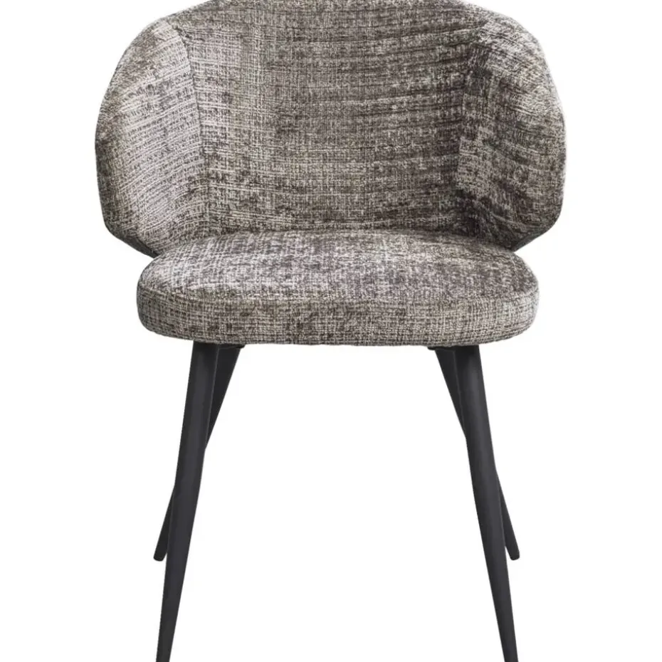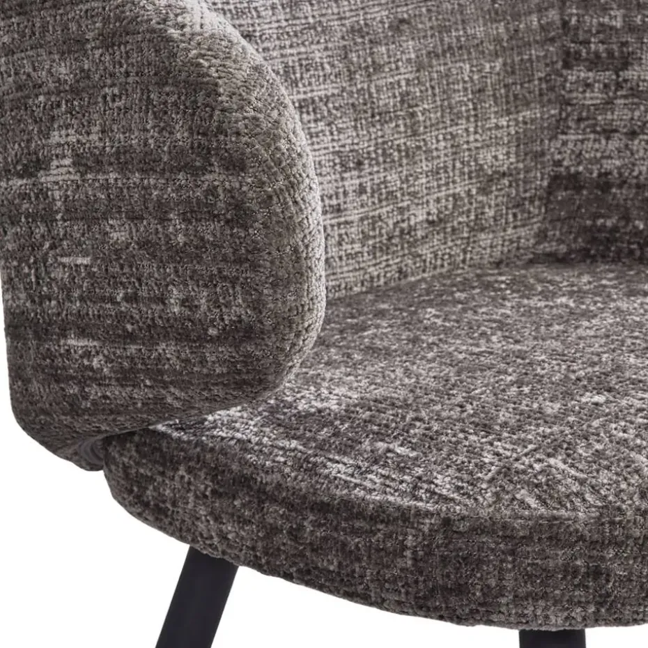 Eetkamerstoel Demi is trendy stoel, bekleed met een taupekleurige stof. De bouclé achtige zitting in combinatie met het zwartkleurige, metalen onderstel maakt het tot de perfecte eetkamerstoel. Stoel Demi heeft een royale zitting met armleuningen, dit zorgt voor een optimaal zitcomfort.