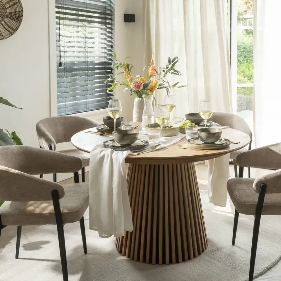 Wanneer je op zoek bent naar een moderne eetkamerstoel, dan is Eetkamerstoel Liv perfect voor jou. Met haar caramel kleurige bekleding en zwarte metalen poten past deze stoel in ieder interieur. Liv heeft ronde vormen en een open rugleuning waardoor de stoel een frisse uitstaling krijgt. De metalen poten en zachte bekleding geven de stoel een trendy look en door de comfortabele armleuningen kun je uren tafelen. Makkelijk onder te tafel te schuiven en verkijgbaar in verschillende kleuren.