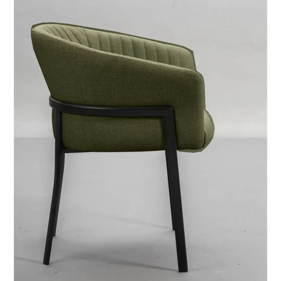 Eetkamerstoel Luigi is een tijdloze stoel die jouw eetkamer een unieke uitstraling geeft! De stof waarmee de zitting en rug- en armleuningen bekleed zijn is slijtvast en heeft een prachtige groene tint, waardoor hij in ieder interieur past. De metalen poten geven de stoel een trendy look en door de comfortabele armleuningen kun je uren tafelen. Ook verkrijgbaar in een zand kleur en antraciet.