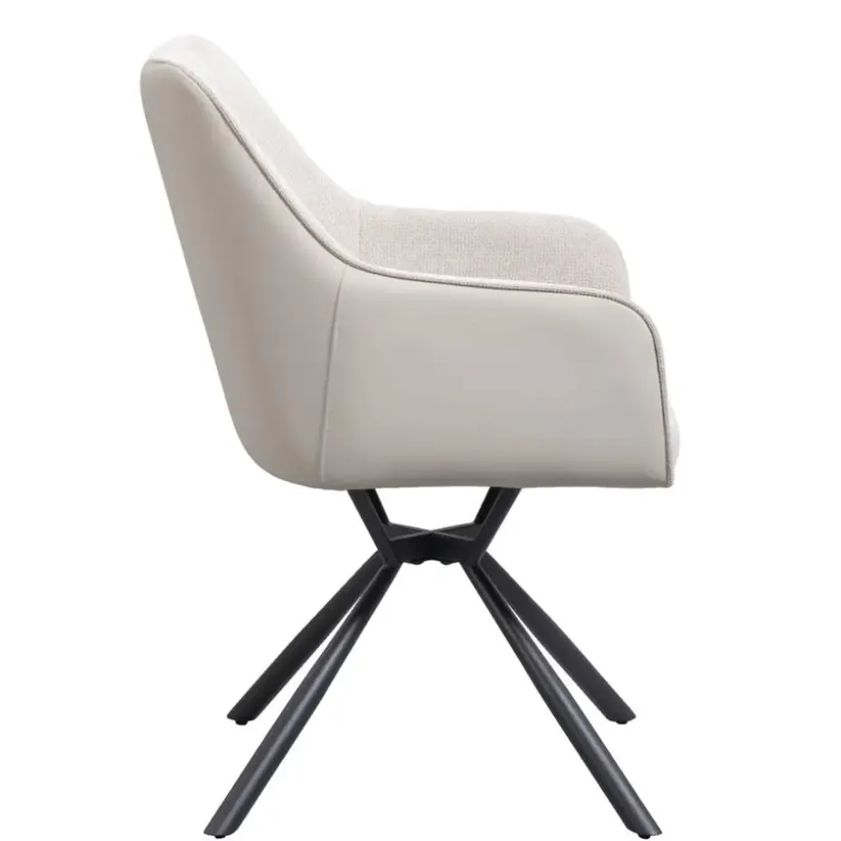 Tafelen doe je comfortabel en in stijl met de Eetkamerstoel Saar. Deze 180 graden draaibare stoel heeft een zachte en stijlvolle bekleding in een beige kleur en een fijne kuipvormige zitting. Daarnaast heeft de stoel een automatische terugdraaifunctie. De binnenkant van de zitting heeft een zachte stoffen bekleding en de buitenkant een lederlook bekleding. De combinatie van beide stoffen en het zwarte metalen onderstel geven de stoel een stoer en trendy uiterlijk.