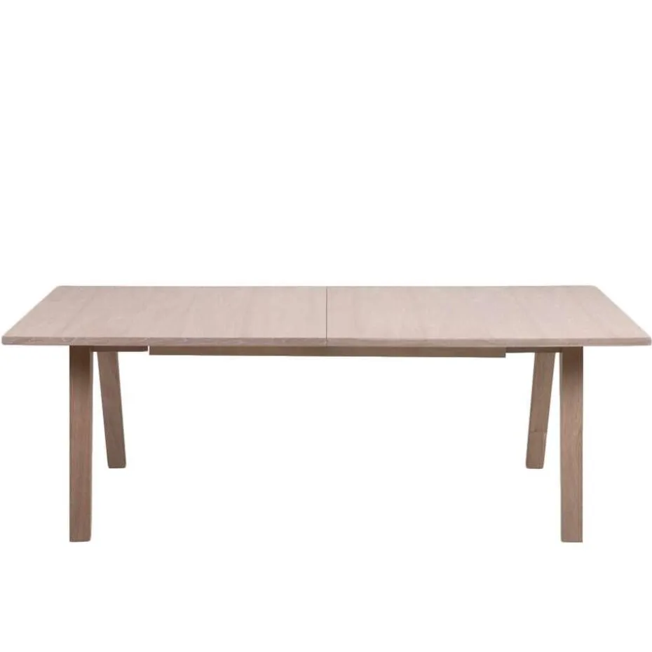 Eetkamertafel Boda is een moderne uitschuifbare tafel ideaal voor in de eetkamerkamer. Deze eettafel heeft een eikenkleur en past bij verschillende kleuren en stijlen. De afmeting van de eetkamertafel is ingeschoven 210×100 cm. De tafel is tot maximaal 310 cm uitschuifbaar. Genoeg plaats om met familie en vrienden uitgebreid te dineren en te borrelen. Tafel Boda heeft een dun tafelblad en wat dikkere stevige poten die schuin naar buiten lopen. Dit maakt de tafel uniek!