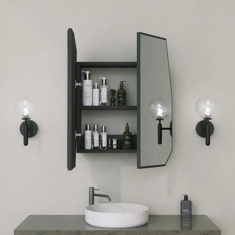 Met een spiegel van 2 cm breed, 60 cm hoog en 70 cm lang is ons badkamermeubel niet alleen functioneel, maar verbetert het ook je dagelijkse verzorgingsroutine. De spiegel geeft een duidelijk spiegelbeeld, zodat je je look gemakkelijk kunt perfectioneren.