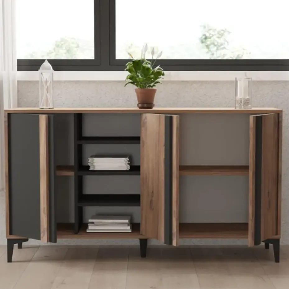 Met zijn strakke en moderne ontwerp past de console moeiteloos in elk interieurthema en voegt hij een vleugje klasse en verfijning toe aan je huis. De combinatie van atlantische en antraciet kleuren creëert een boeiend contrast dat zeker in het oog springt bij iedereen die de kamer binnenkomt.