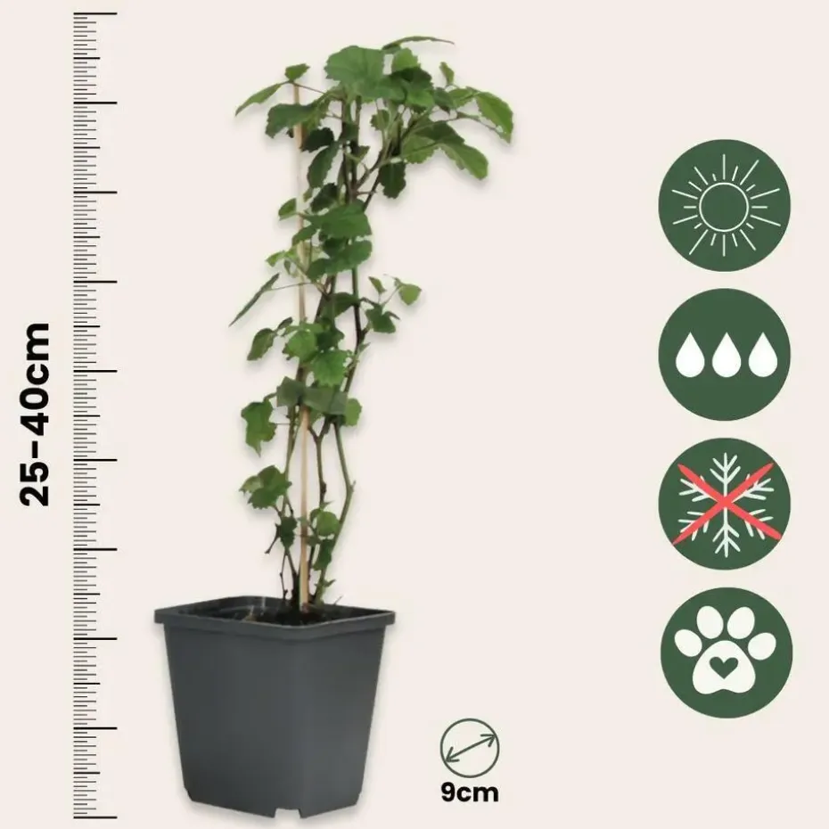 De planten hebben bij levering een hoogte van 25-40cm, gemeten inclusief de kwekerspot. De planten worden geleverd in een kwekerspot met een diameter van 9cm.