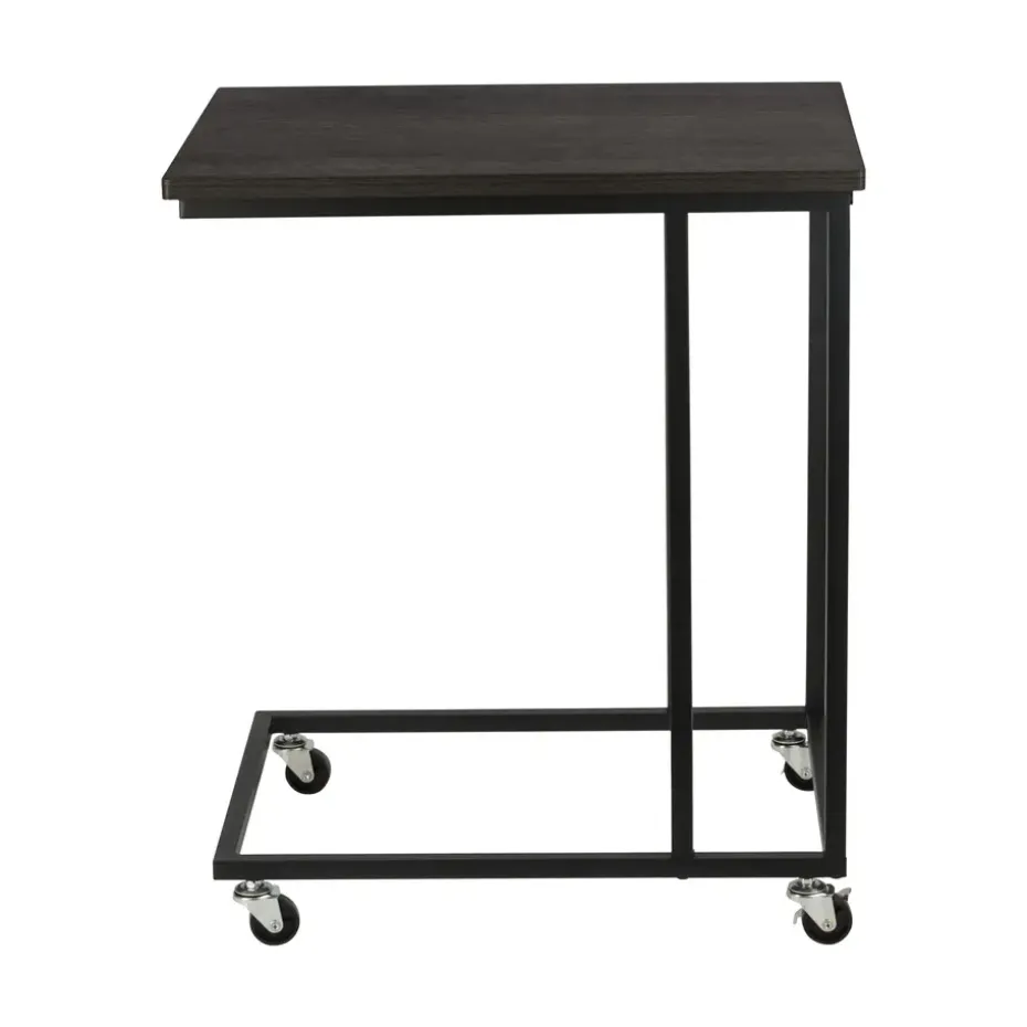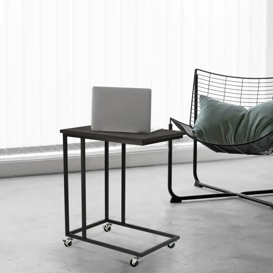De ERRO bijzettafel zwart wordt geleverd met wieltjes én met verstelbare voetjes. Zo kun je zelf kiezen wat voor jou het fijnst werkt. Ze zijn gemakkelijk te monteren dus je kunt op een later moment ook nog wisselen. Het metalen frame heeft een mooie mat zwarte poedercoating en de spaanplaat plank heeft een hout dessin.