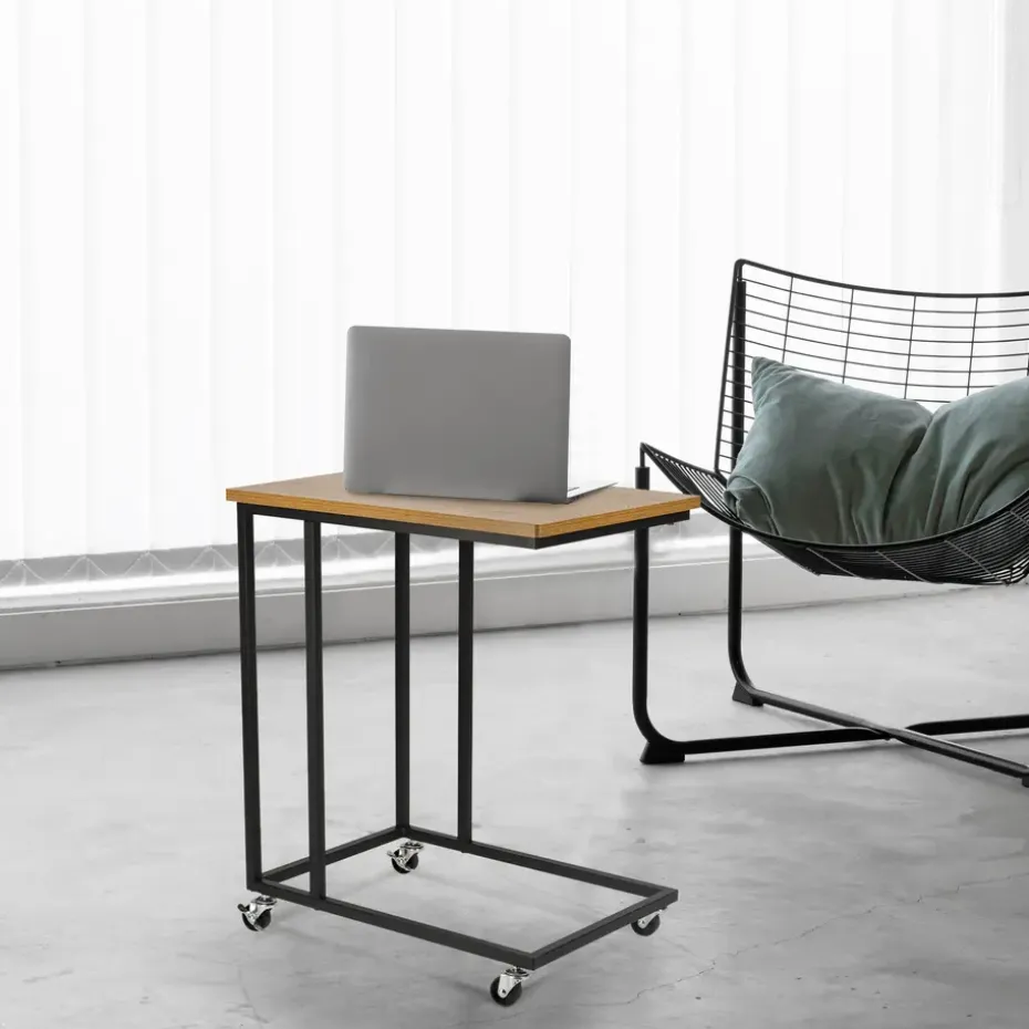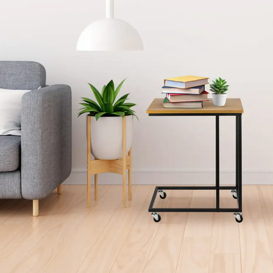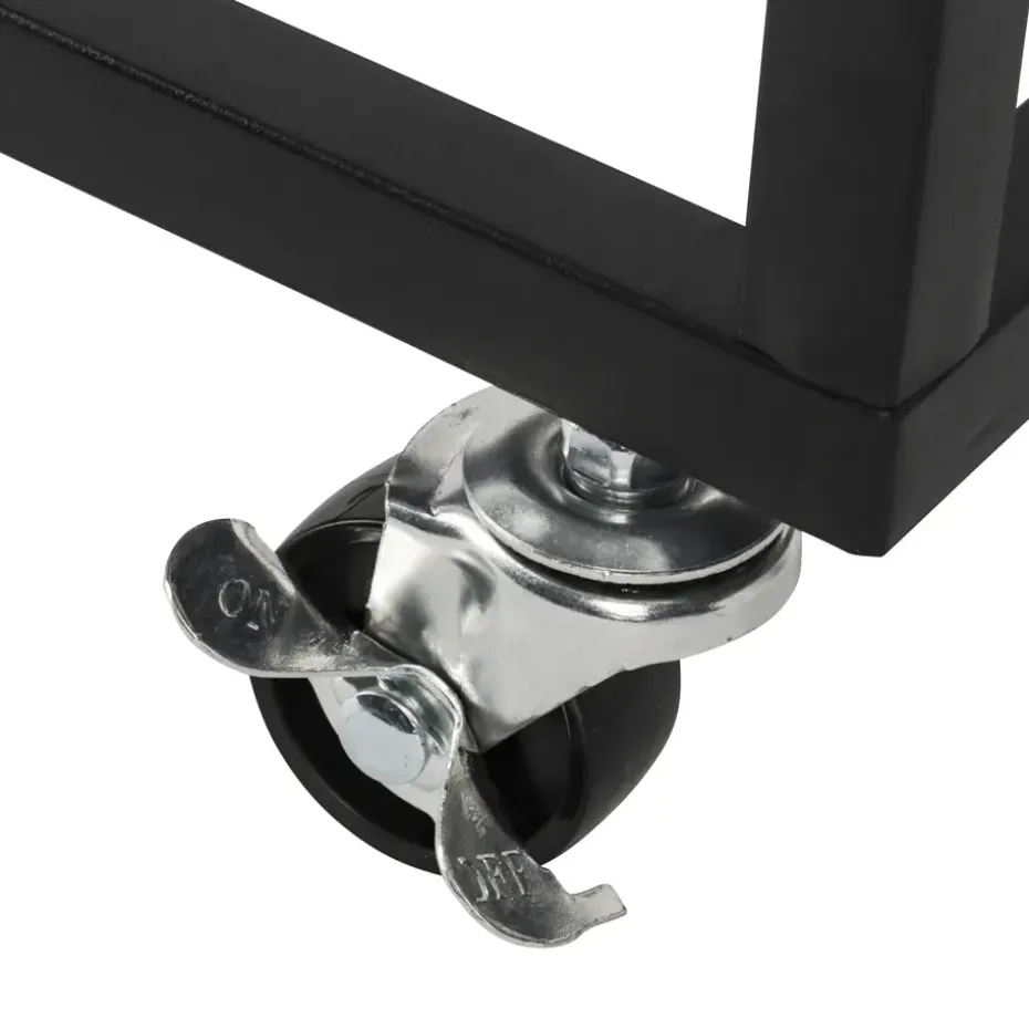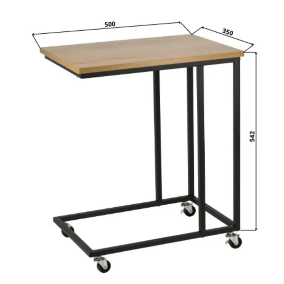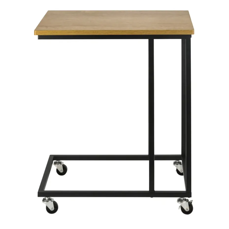 De ERRO bijzettafel wordt geleverd met wieltjes én met verstelbare voetjes. Zo kun je zelf kiezen wat voor jou het fijnst werkt. Ze zijn gemakkelijk te monteren dus je kunt op een later moment ook nog wisselen. Het metalen frame heeft een mooie mat zwarte poedercoating en de spaanplaat plank heeft een hout dessin.