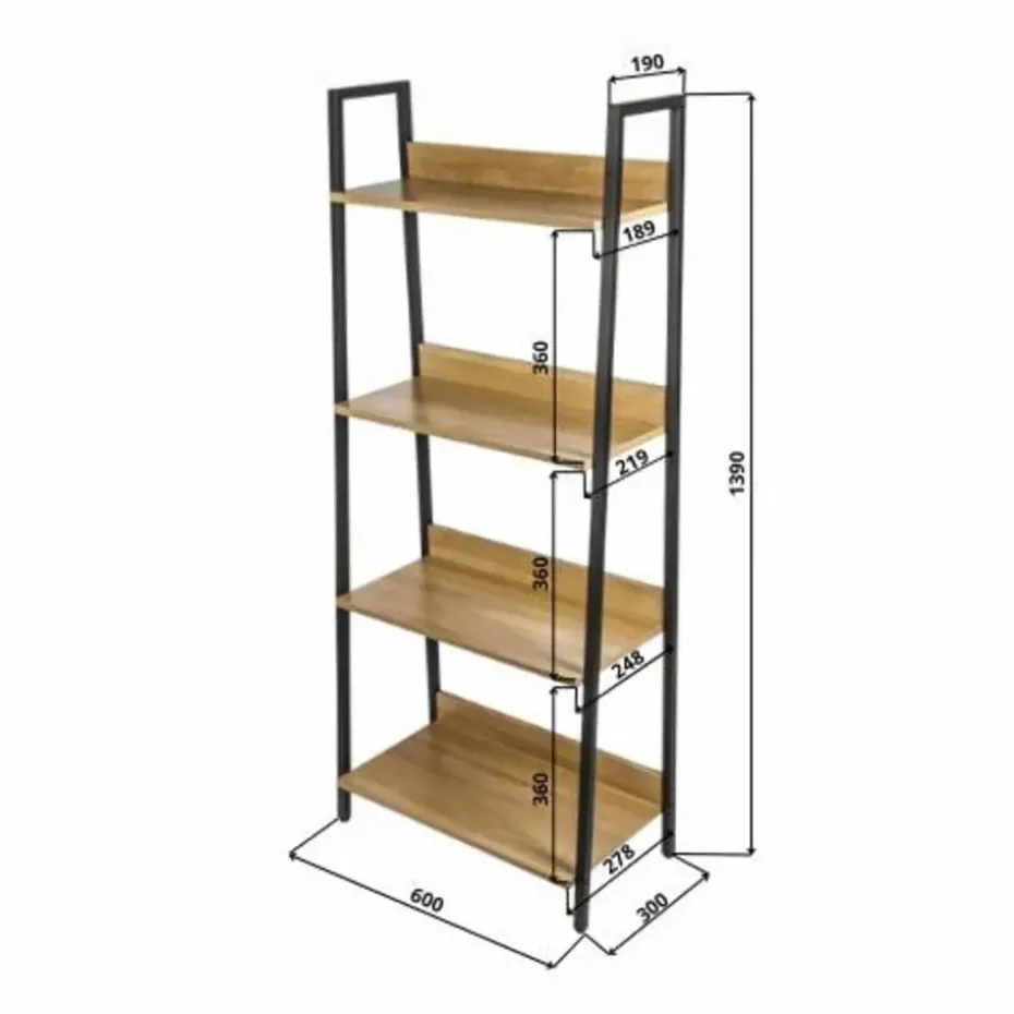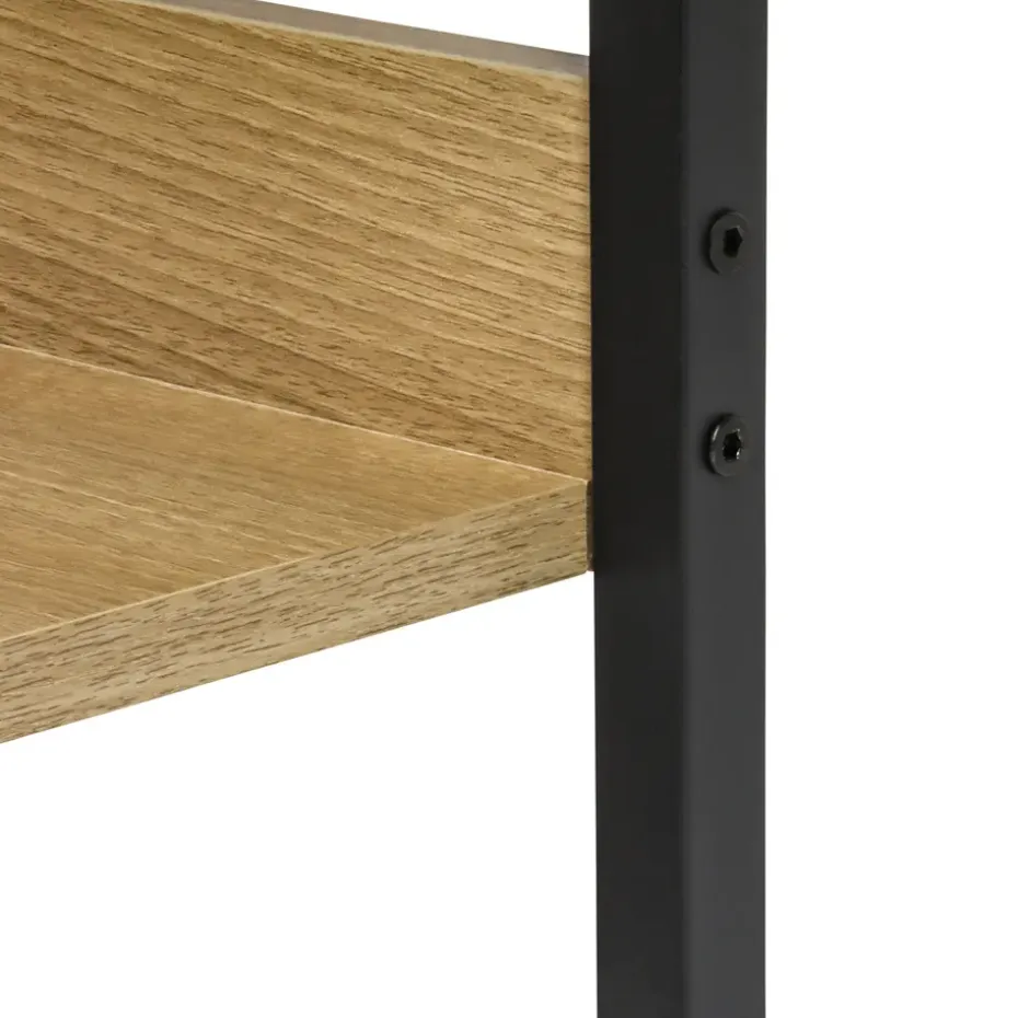 Een boekenkast voor je collectie boeken, decoratie of plantjes: het ERRO boekenrek is veelzijdig in gebruik en dat maakt hem perfect voor iedere woning. Dit wandrek is voorzien van stevige planken van spaanplaat met een houtdessin en een zwart metalen frame. Met een breedte van 60 cm, diepte van 30 cm en hoogte van 140 cm is dit boekenrek ideaal om je favoriete boeken, planten of decoratie op uit te stallen. Dankzij de open schappen biedt de kast veel opbergruimte.