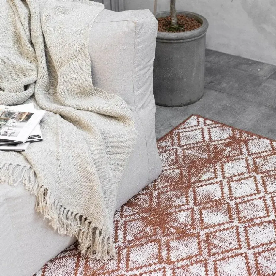 Geef je buitenruimte een frisse en moderne uitstraling met het Frost buitenkleed. Dit stijlvolle kleed heeft een modern patroon, waardoor het een eigentijdse en sfeervolle toevoeging is aan je terras, balkon of tuin. Verkrijgbaar in de kleuren grijs/wit en roest/wit, biedt het een subtiele balans tussen warmte en elegantie.