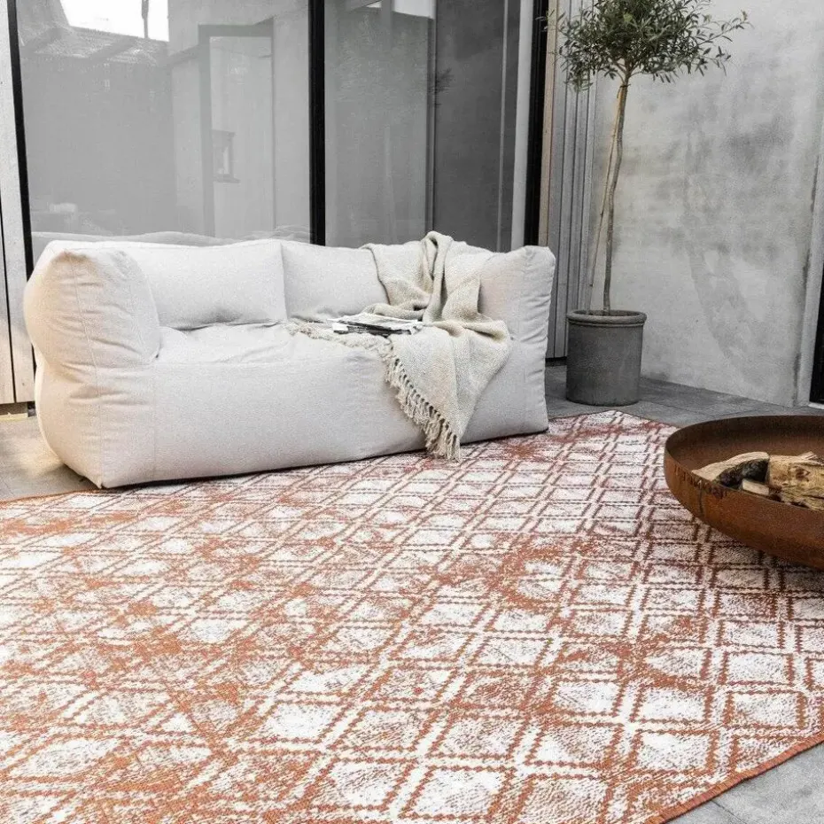 Geef je buitenruimte een frisse en moderne uitstraling met het Frost buitenkleed. Dit stijlvolle kleed heeft een modern patroon, waardoor het een eigentijdse en sfeervolle toevoeging is aan je terras, balkon of tuin. Verkrijgbaar in de kleuren grijs/wit en roest/wit, biedt het een subtiele balans tussen warmte en elegantie.
