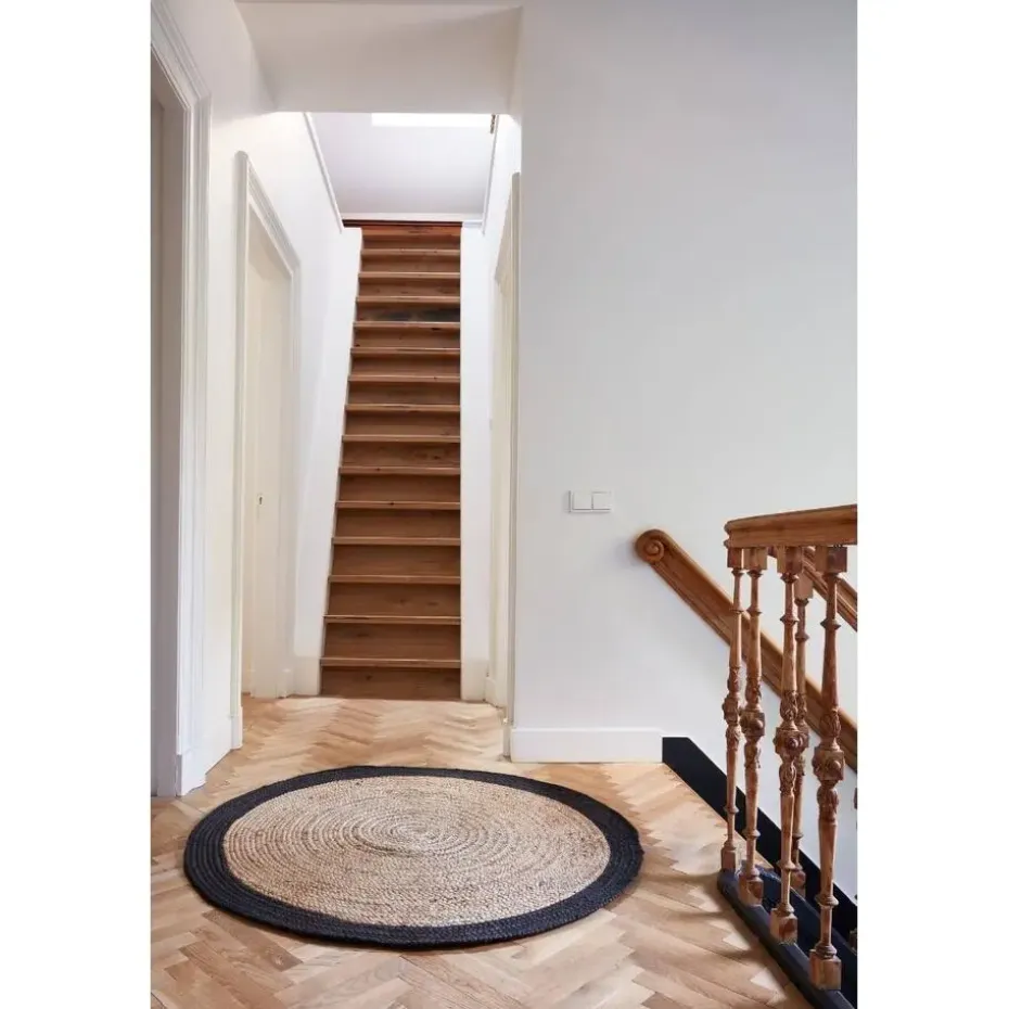 Ronde vloerkleden vallen op, zo ook dit jute vloerkleed. Dit ronde Jute vloerkleden heeft een hoogwaardige kwaliteit. De structuur van dit jute kleed zorgt voor een speelse look. Een rond kleed is een echte eye-catcher in elke ruimte. De kleurvan ditronde vloerkleed is naturel met een antraciet rand en kan daardoor gemakkelijk gecombineerd worden met diverse kleuren en stijlen. Leg een rond tapijt bijvoorbeeld in je woonkamer, slaapkamer, eetkamer of hal.