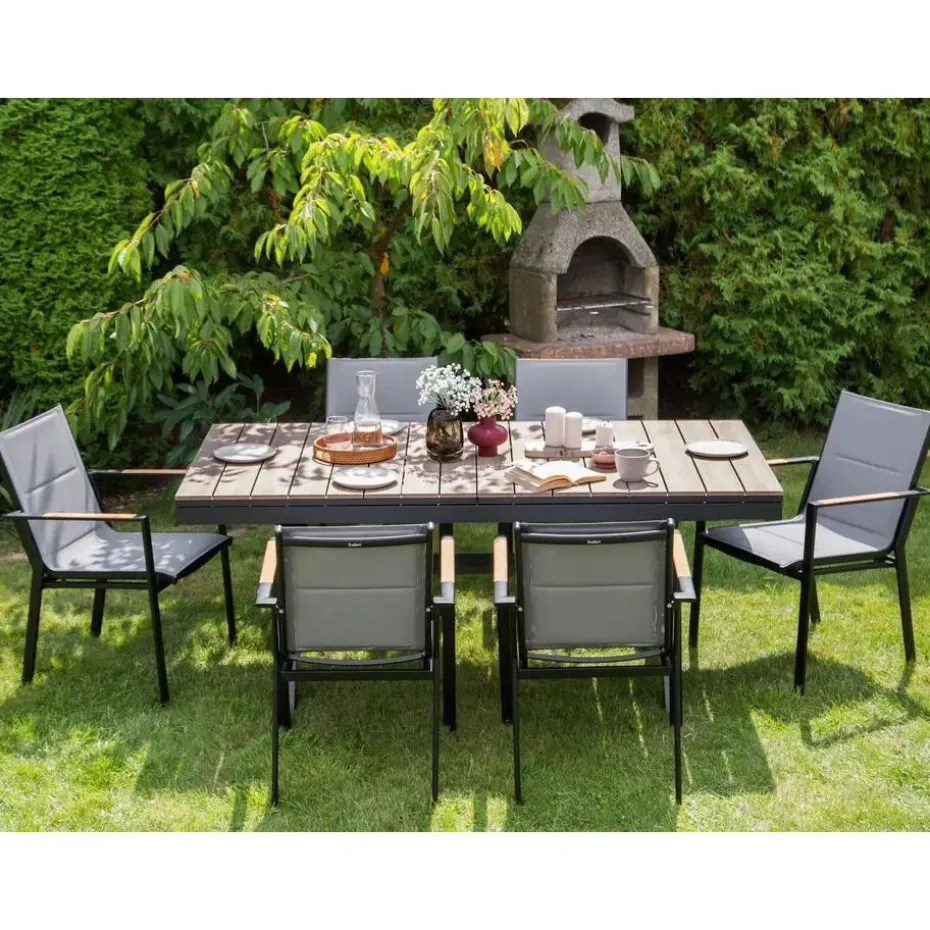 Belangrijkste eigenschappen: Perfect voor eten in grotere groepen, Modern terras- en tuinmeubilair, Stabiele en duurzame constructie, UV-bestendigheidsklasse, Uitschuifbaar tafelblad voor extra plek