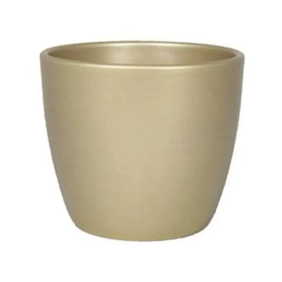 Bloempot/plantenpot van keramiek in het parelgoud. Bloempotten met een mooie gladde afwerking aan de buitenkant. Gewicht: 4.4 kilo. Het keramiek heeft een coating zodat het geen water opzuigt. Formaat: diameter 32 cm, hoogte 27 cm. Model: Boule.