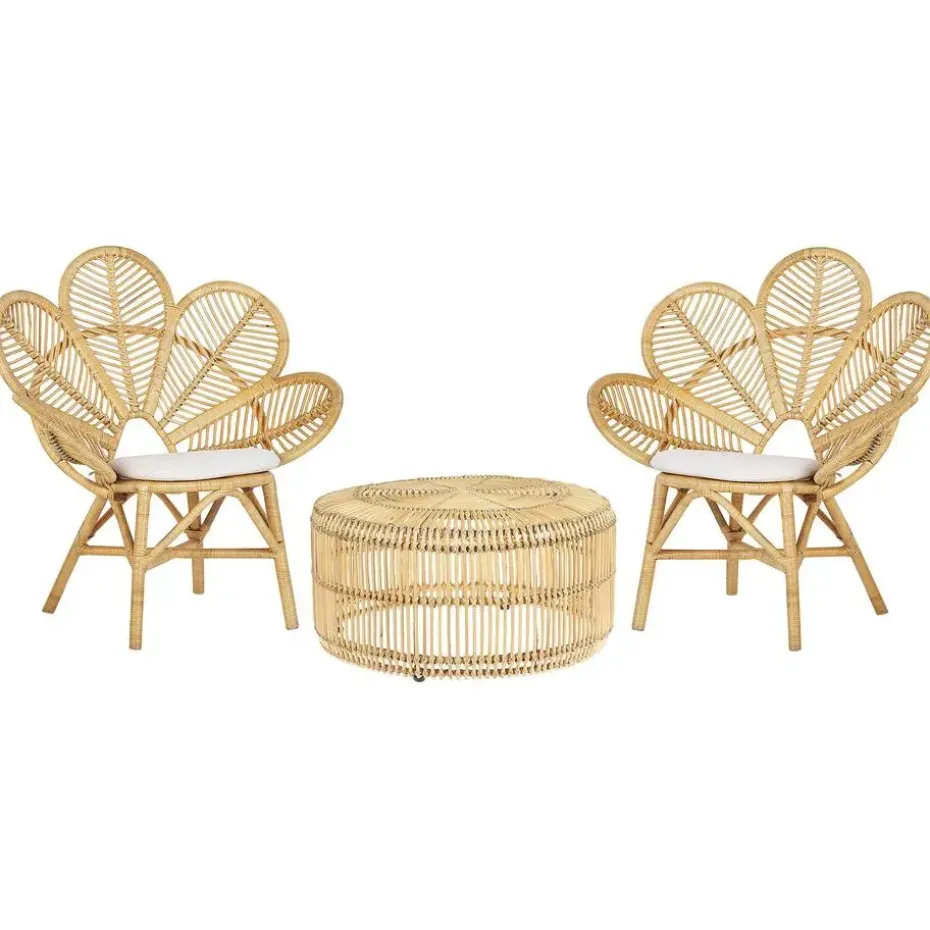 Belangrijkste eigenschappen: Praktische touwtjes voor gemakkelijke bevestiging aan de zitting, Geschikt voor binnen- en buitengebruik, Stevig gevlochten rotan, Verwijderbare kussenhoezen, Natuurlijke materialen, Lichtgewicht en makkelijk vervoerbaar