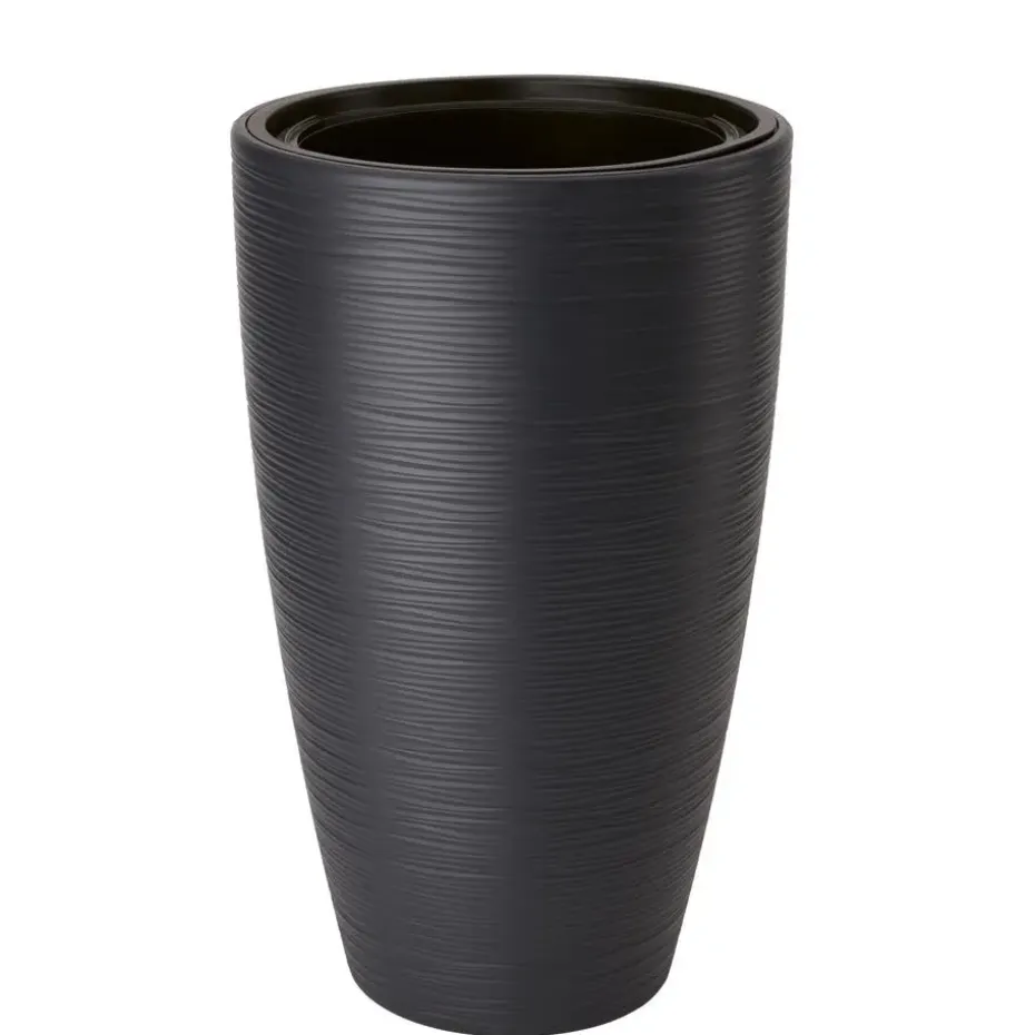 Plantenpot/bloempot uit de Gobi collectie met een sfeervol luxe streepjes patroon aan de buitenzijde. De Form Plastic Plantenpot/bloempot Gobi combineert functionaliteit met een strak design, perfect voor zowel binnen- als buitengebruik. Gemaakt van kunststof, biedt deze pot een moderne uitstraling. De elegante antraciette kleur past moeiteloos in elke omgeving, terwijl de meegeleverde binnenpot zorgt voor gebruiksgemak en optimale groeiomstandigheden voor je planten. Met zijn royale afmetingen is deze pot ideaal voor grotere planten en bloemen, waardoor je een stijlvol antraciet accent aan je woonruimte kunt toevoegen.