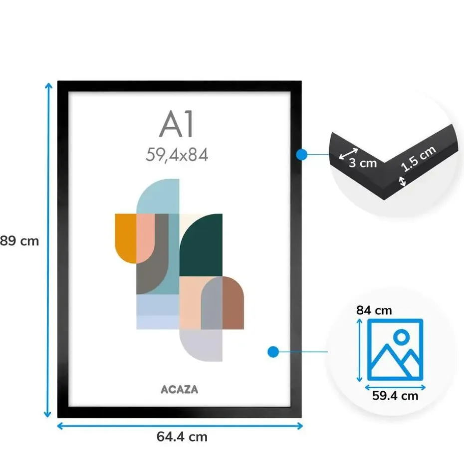 – Materiaal: frame in MDF hout, plexiglas, metalen bevestigingsclips