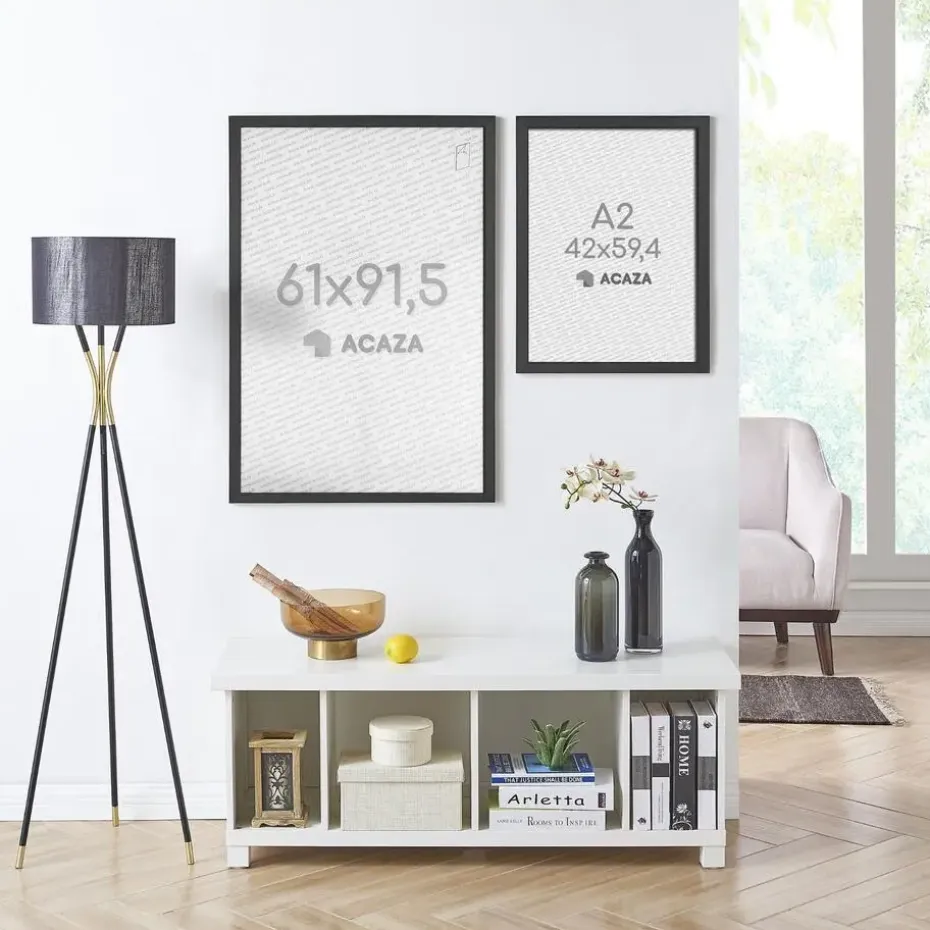 Dankzij deze houten lijst kan je je foto’s, posters en affiches een plaatsje aan de muur geven. De zwarte fotolijst is aan de achterkant voorzien van hangers waarmee je ze zowel horizontaal als verticaal tegen de muur kan bevestigen.