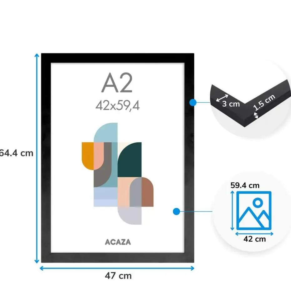 – Materiaal: frame in MDF hout, plexiglas, metalen bevestigingsclips