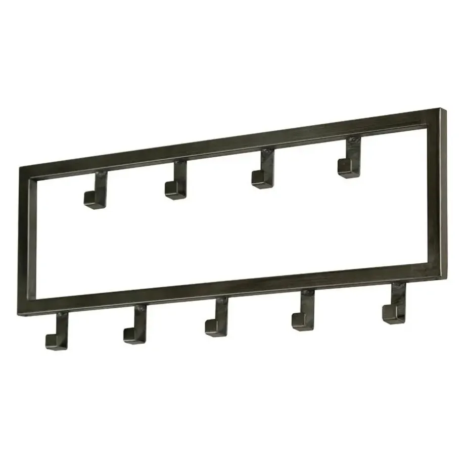 De kapstok industrieel 9 haken – 50 cm past dankzij zijn ontwerp perfect binnen een industriële, stoere of moderne inrichting. Hij is in zijn geheel gemaakt van gepoedercoat staal en heeft een zwarte afwerking gekregen. Deze variant bestaat uit 9 haakjes die verdeeld zijn over twee rijen. Hierdoor is er genoeg ruimte voor verschillende jassen, sjaals en andere accessoires. De kapstok is voorzien van twee oogjes aan de achterkant om de kapstok mee te bevestigingen. Het bevestigingsmateriaal wordt niet meegeleverd omdat verschillende wandmaterialen vragen om verschillende soorten wandbeslag. Kapstok industrieel 9 haken is licht van gewicht en daardoor gemakkelijk te bevestigen en geschikt voor diverse wandsoorten.
