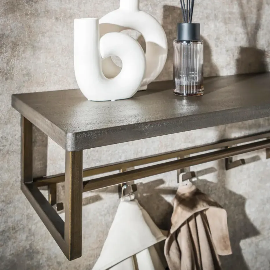 Deze kapstok ‘Nowi’ is vervaardigd met een ambachtelijke Nowi finish, wat zorgt voor een unieke 3D-structuur die elke ruimte een stijlvolle uitstraling geeft. Met zes haken en een roede in een brass antiek finish biedt deze kapstok niet alleen functionaliteit, maar ook een vleugje elegantie aan ieder interieur. Deze kapstok maakt onderdeel uit van de ‘Nowi’ serie.