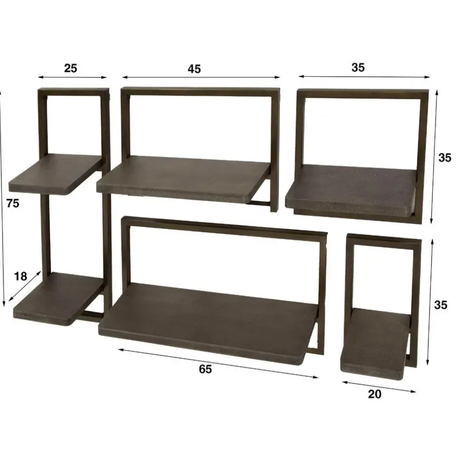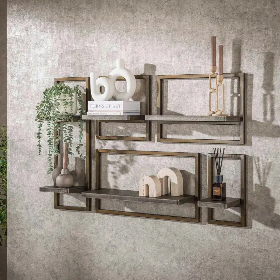 Deze wandschap set van 5 ‘Nowi’ is een perfecte combinatie van functionaliteit en stijl, vervaardigd met een ambachtelijke Nowi finish die een unieke 3D-structuur biedt. Het metaal van de schappen is uitgevoerd in een prachtige brass antiek finish. Deze wandschap set maakt onderdeel uit van de ‘Nowi’ serie.