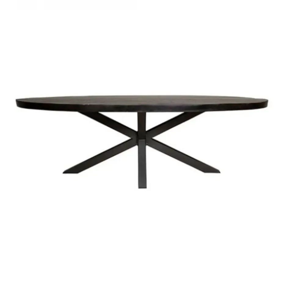Wanneer je deze zwarte mangohouten tafel Morada in huis haalt, haal je een pronkstuk in huis. De ovale vormgeving en het stoere matrix onderstel vormen een mooi lijnenspel. Met deze tafel haal je robuuste charme in huis. Combineer de zwarte tafel met je zwarte kasten, andere meubels en zwarte accessoires. Of je zoekt er andere stoere kleuren bij zoals okergeel, cognac of petroleumblauw. Bij deze tafel passen stoere stoelen, bijvoorbeeld in leer. Wil je bij je stoere tafel enkele zachtere elementen? Denk dan aan velvet stoelen in zachte kleuren.