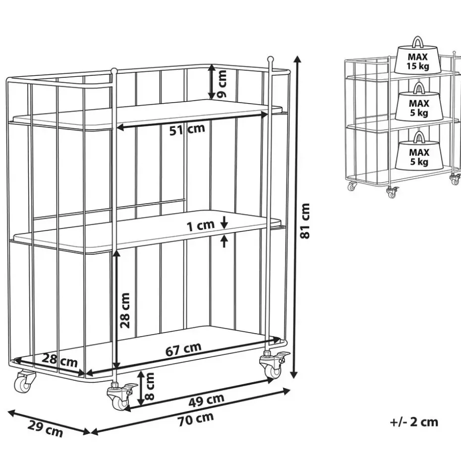 Belangrijkste eigenschappen: Zwenkwieltjes met rolbeveiliging, Decoratief en functioneel, Modern design, Stabiele en duurzame constructie, Multifunctioneel