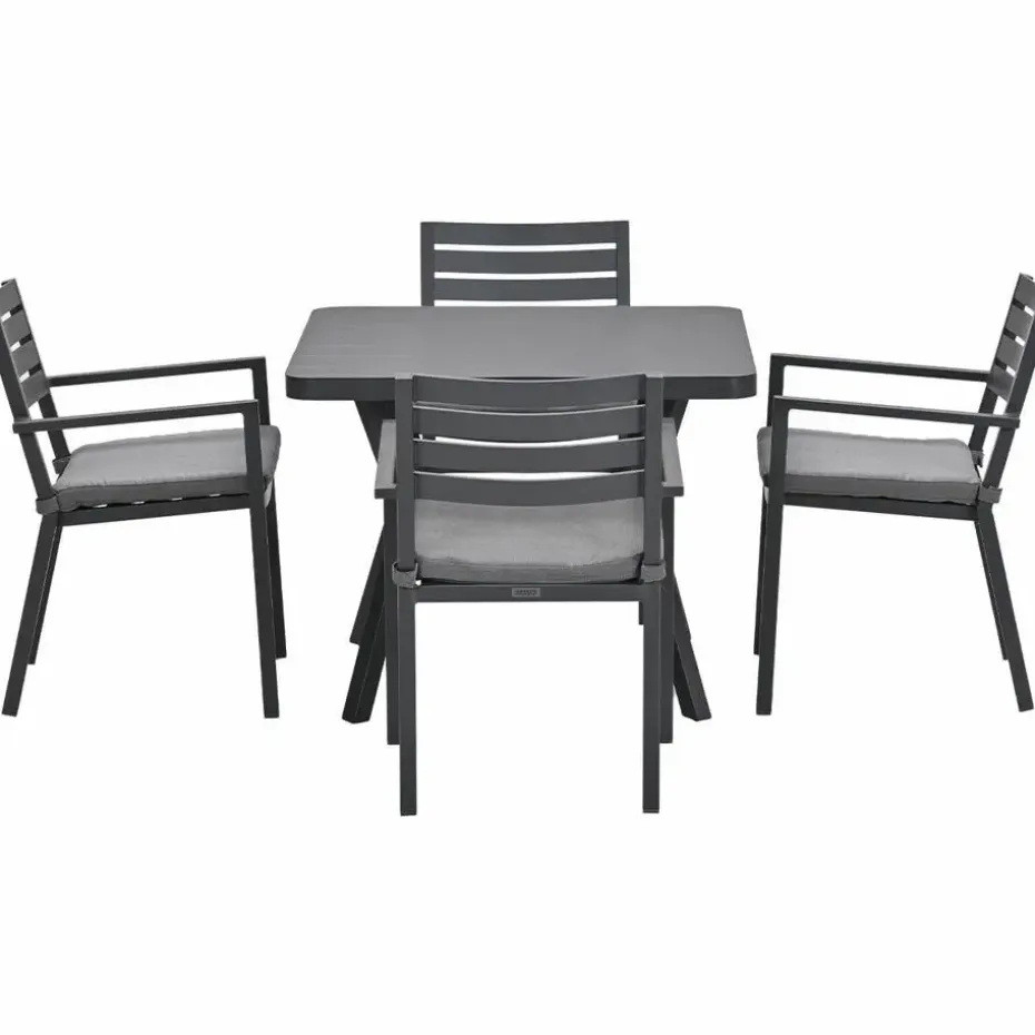 De Mina tuintafel is vervaardigd uit een onderhoudsvrij en weerbestendig aluminium. Dit aluminium is voorzien van een stevige laag poedercoating. Aluminium is licht van gewicht en daardoor eenvoudig te verplaatsen.