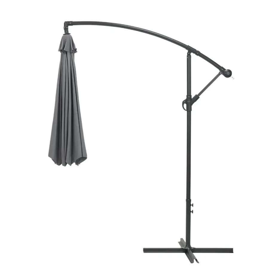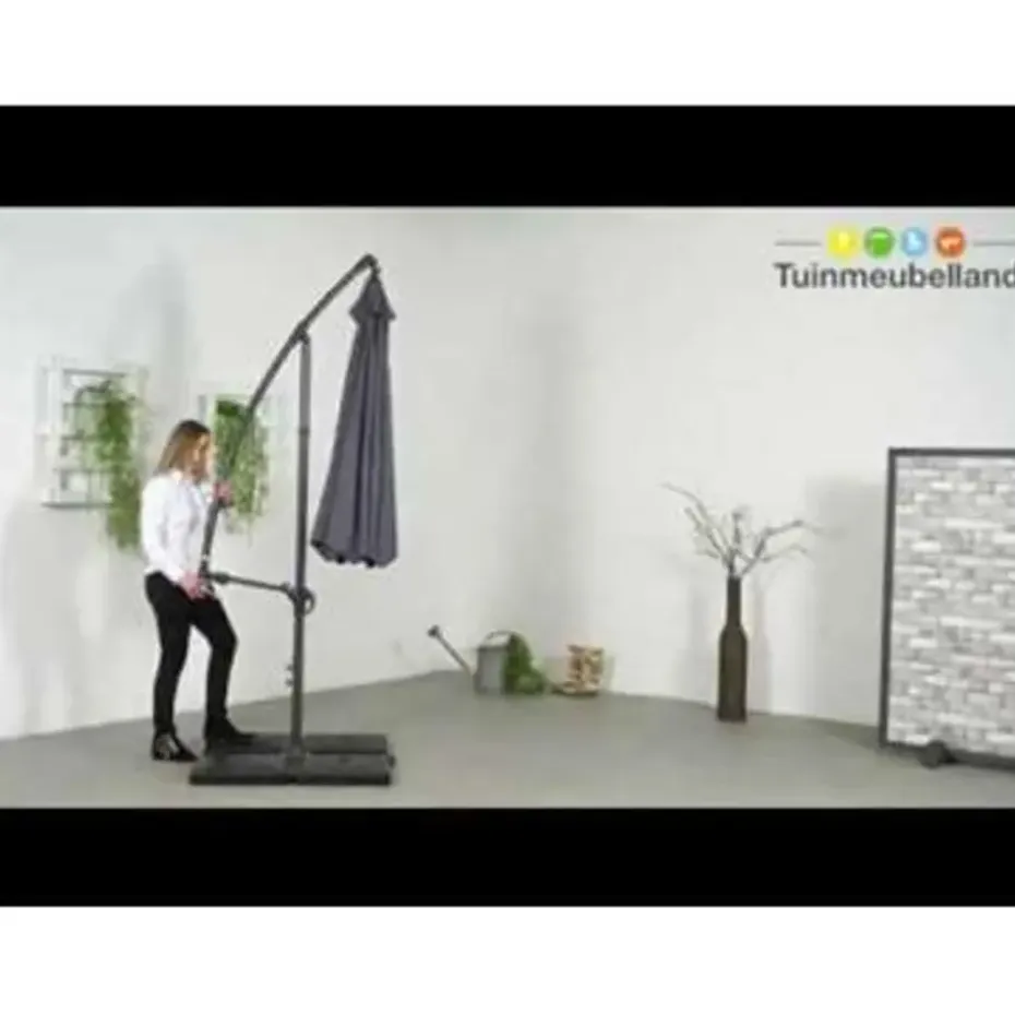 De Athene zweefparasol is een absolute aanrader als je op zoek bent naar een zweefparasol met een uitstekende prijs kwaliteit verhouding. De Athene parasol is eenvoudig te bedienen, licht van gewicht en gemakkelijk te plaatsen. Met de Athene parasol koop je voor een leuk bedrag een complete vrijhangende parasol inclusief kruisvoet. De parasol is uitgevoerd in een aluminium frame wat ervoor zorgt dat de parasol niet kan roesten, maar ook gemakkelijk is in gebruik door het lichte gewicht. Het aluminium frame is voorzien van een stevige poeder coating. Deze coating is dusdanig sterk dat het kras- en stootvast is. Het parasoldoek is vervaardigd uit 180 grams polyester. Het doek is voorzien van een windvanger en is spatwaterdicht. De parasol draai je eenvoudig open door middel van het draaimechanisme. De baleinen van deze parasol zijn gemaakt van glasfiber, dit materiaal is zeer buigzaam en zorgt voor een mooi strak doek dat tegen een stootje kan. De Athene zweefparasol van kwaliteitsmerk Garden Impressions wordt geleverd inclusief praktische kruisvoet. Deze kruisvoet kan ingelegd worden in het terras of gebruikt worden op het terras, waarbij het belangrijk is dat op de kruisvoet minimaal 60 kg wordt gelegd. De diameter van de parasolbuis bedraagt 48 mm. Na gebruik van de parasol kan je deze beschermen met een hoes speciaal voor zweefparasols. Hierdoor kun je de parasol tijdens zonnige dagen prima buiten laten staan. Bij slecht weer til je de zweefparasol gemakkelijk van de voet en berg je deze op in de schuur. Deze parasol heeft een aluminium frame in de kleur royal grey met een polyester licht grijs kleurig parasoldoek. De totale hoogte is 210 cm, waarvan het doek 190 cm hoog is en 300 cm in diameter is.