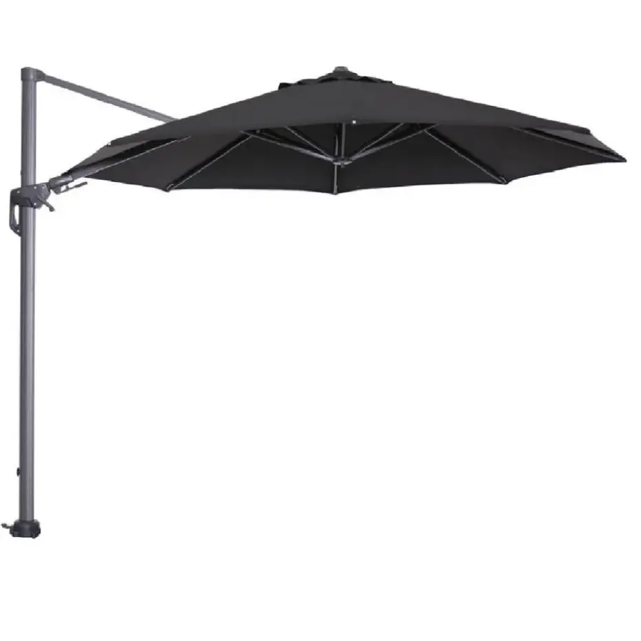 De parasol beschikt over een 250 grams polyester doek wat zorgt voor bescherming tegen de zon. Verkleuring van het doek door de zon is na verloop van tijd niet tegen te gaan. Bovendien is het doek voorzien van een brandwerende PA-coating en een windvanger, zodat de wind goed weg kan als deze onder de parasol komt. Het parasoldoek is spatwaterdicht. Het dikke aluminium frame is voorzien van een hoogwaardige kwaliteit poeder coating. Deze coating is dusdanig sterk dat het kras- en stootvast is. De baleinen van de parasol zijn voorzien van doekspanners, zodat het doek mooi strak wordt gehouden.