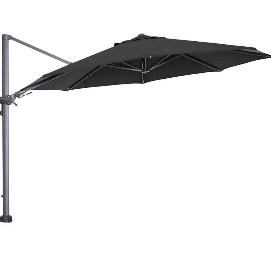 De Hawaii parasol hoef je in principe niet te verplaatsen, want vanuit één positie creëer je schaduw waar deze nodig is. De Hawaii parasol van Garden Impressions zet je gemakkelijk schuin, door middel van het handvat schuif je het doek in verschillende standen schuin tot bijna 90 graden. Daarnaast kun je hem ook nog eens horizontaal verstellen. Bovendien kun je de Hawaii parasol ook nog eens 360 graden rond draaien. Na gebruik kun je gebruik maken van een Hawaii parasolhoes welke los aangeschaft kan worden, hierdoor kun je de parasol tijdens zonnige dagen buiten laten staan. Bij slecht weer til je deze zweef parasol gemakkelijk van de voet en berg je deze op in de schuur. Bij de Hawaii parasol zijn verschillende voeten verkrijgbaar om de parasol stevig in de tuin te plaatsen. Je kunt kiezen uit een kruisvoet, grondanker of een luxe granieten voet met wielen. Voor deze grote Hawaii parasol kun je het beste een Hawaii voet aanschaffen van minimaal 90 kg. Wanneer er meer wind staat op het terras dan is een voet van 120 kg beter geschikt.