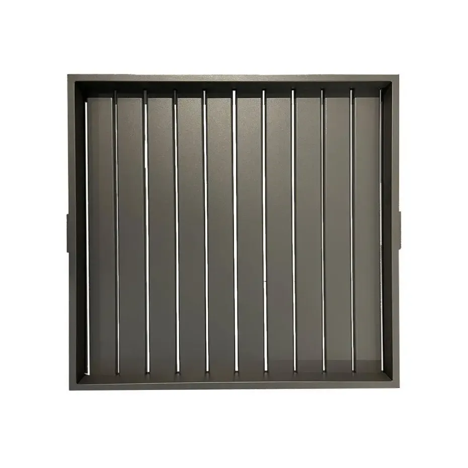 Het James dienblad is vervaardigd uit aluminium. Het aluminium is voorzien van een hoogwaardige kwaliteit poedercoating in de kleur donker grijs. Het dienblad is geschikt om buiten te laten liggen, ook als het regent.