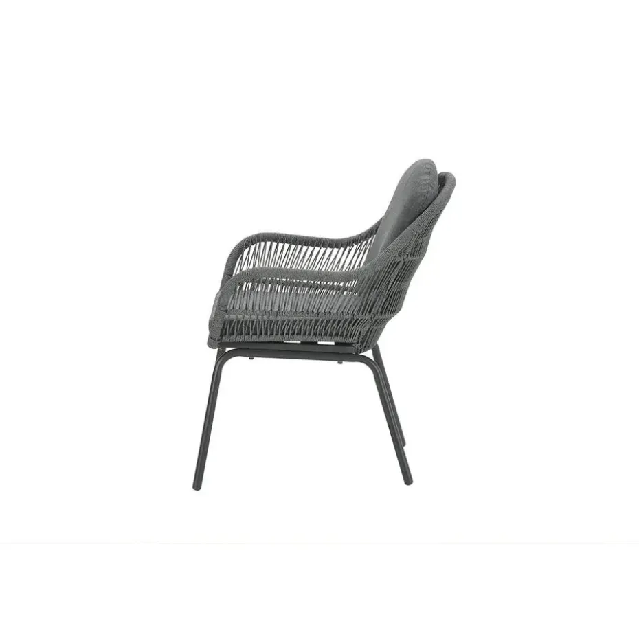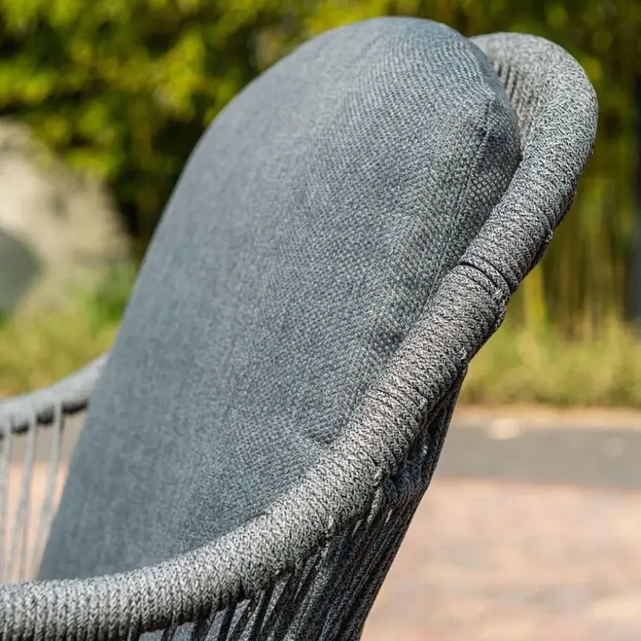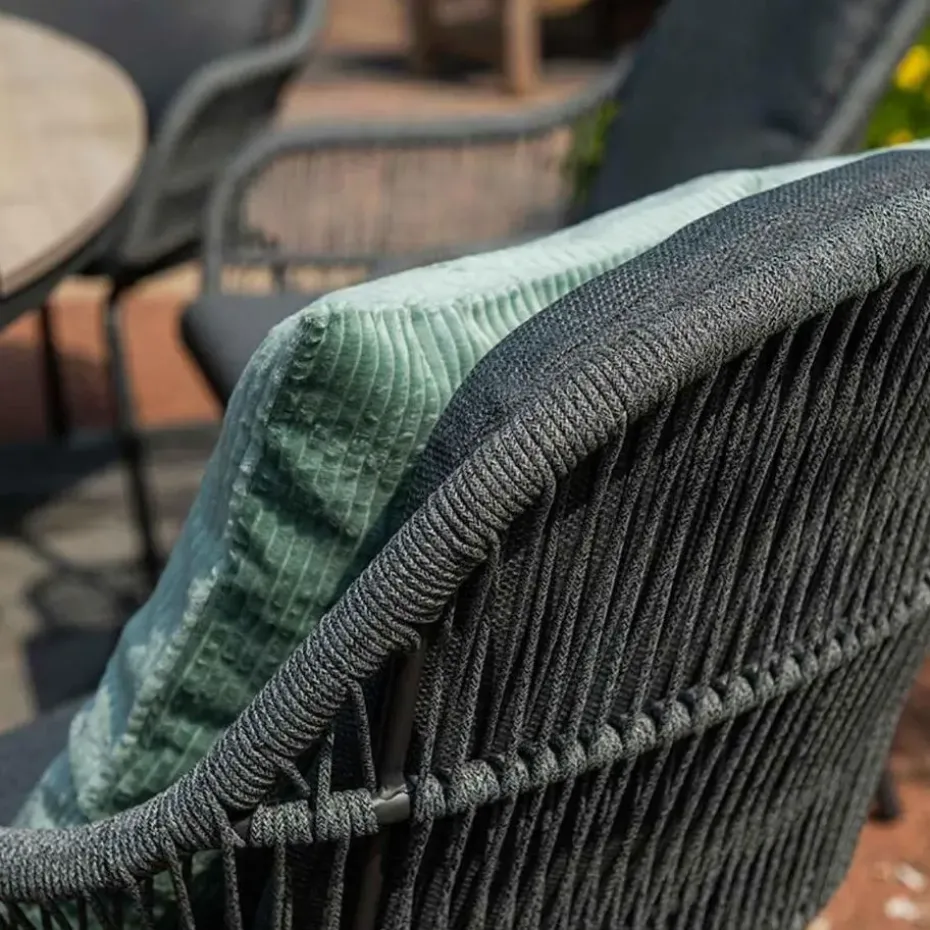De Yima tuinstoel is vervaardigd uit een onderhoudsvrij aluminium frame met een stevige poedercoating. Om dit aluminium frame zit 5 mm dik hoogwaardige kwaliteit licht grijs gekleurd touw. Dit touw is te vergelijken met touw dat in de scheepsvaart gebruikt wordt. Het touw is voorzien van een rubberen kern binnenin met daarin meerdere polyester draden voor de stevigheid. Om de rubberen kern zit solution dyed polyester rope. Dit betekent dat het touw door en door gekleurd is en verkleurt veel minder snel. De meegeleverde dikke kussens zijn vervaardigd uit een hoogwaardige kwaliteit polyester. De kussens zijn voorzien van een rits waardoor de hoezen gemakkelijk met de hand gewassen kunnen worden. De kussens zijn niet waterbestendig en kunnen na gebruik worden opgeborgen in de schuur of in een kussenbox. Wel zijn de kussens voorzien van een waterafstotende coating. Dit is vooral erg praktisch als er bijvoorbeeld op het kussen wordt gemorst met drinken. Je veegt het vocht er namelijk gemakkelijk weer af. De Zadar tuintafel van kwaliteitsmerk Garden Impressions is vervaardigd uit een onderhoudsvrij en weerbestendig aluminium frame met een stevige donker grijze poedercoating. Deze laag zorgt ervoor dat het frame kras en stootvast is. Het tafelblad is voorzien van een teakhout look, maar is gewoon van aluminium. Dit geeft de tuintafel een uniek uiterlijk en is gemakkelijk af te nemen met een doekje.