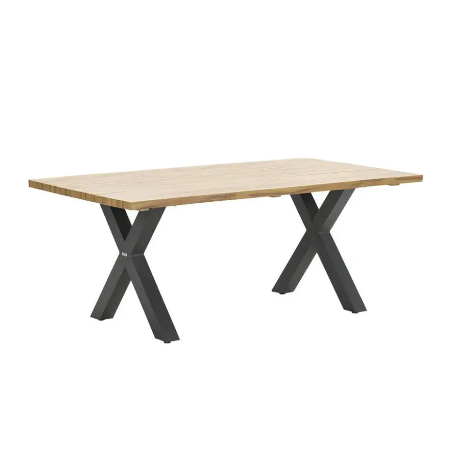 Op zoek naar een mooie tuintafel met het uiterlijk van teakhout en een robuust onderstel? Dan is de Zadar tafel ideaal geschikt voor jouw! Deze tuintafel heeft een teak look aluminium tafelblad en is leverbaar met verschillende onderstellen. Een prachtige tuintafel met weinig onderhoud! Deze tuintafel is goed te combineren met verschillende soorten tuinstoelen. De Zadar tuintafel van kwaliteitsmerk Garden Impressions is vervaardigd uit een onderhoudsvrij en weerbestendig aluminium frame met een stevige donker grijze poedercoating. Deze laag zorgt ervoor dat het frame kras en stootvast is. Het tafelblad is voorzien van een teakhout look, maar is gewoon van aluminium. Dit geeft de tuintafel een uniek uiterlijk en is gemakkelijk af te nemen met een doekje. Het tafelblad heeft een afmeting van 180×100 cm en heeft een X-style tafelframe. Aluminium is schoon te maken met een sopje met groene zeep en lauw water. Voor het drogen kun je het beste een pluisvrije doek gebruiken. Na ontvangst dient de tuintafel nog gemonteerd te worden. De poten dienen nog aan het blad gemonteerd te worden. Dit is op een gemakkelijke manier zelf te doen door de bijgeleverde handleiding en montage benodigdheden. De Zadar serie bevat verschillende afmetingen tafelbladen, maar ook verschillende onderstellen. Zo heb je de keuze uit een afmeting van 180 x 100 cm of 220 x 100 cm.