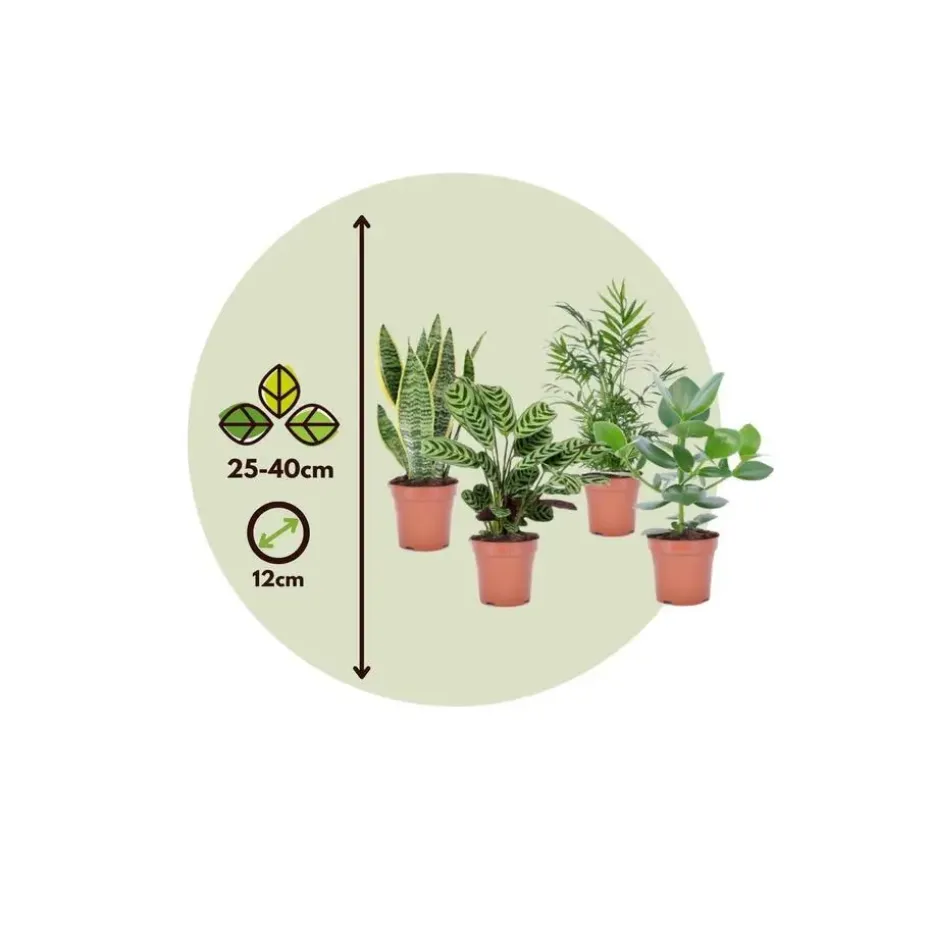 Tover elke kamer om tot een levende jungle met deze mooie en supermakkelijke planten. Deze kamerplantenmix bestaat uit de makkelijkste kamerplanten om te kweken en te verzorgen. Deze kamerplanten zijn uitzonderlijk robuuste kamerplanten die heel weinig water nodig hebben. Perfect als je niet veel tijd hebt of meestal vergeet ze water te geven! Bovendien zien ze er ook nog eens geweldig uit. De mix bevat de volgende planten: Ctenanthe Burle-Marxii, Chamaedorea Elegance, Clusia Rosea ‘Princess’ en Sansevieria.