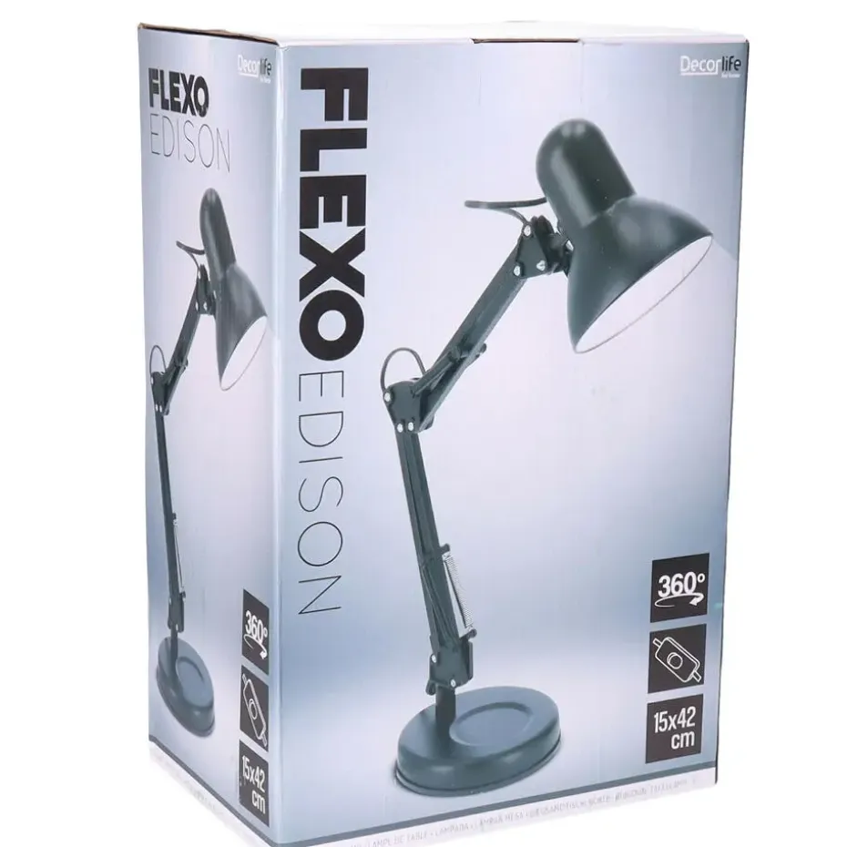 Zwarte bureaulamp/tafellamp 37 x 15 x 42 cm. Lamp in de kleur zwart met verzwaarde voet. U kunt de lamp bijvoorbeeld op een bureau, nachtkastje, plank of tafel plaatsen. Met buigbare stang en verstelbare lampenkap, waardoor u de lamp naar wens kunt positioneren en deze ook als leeslamp zou kunnen gebruiken.