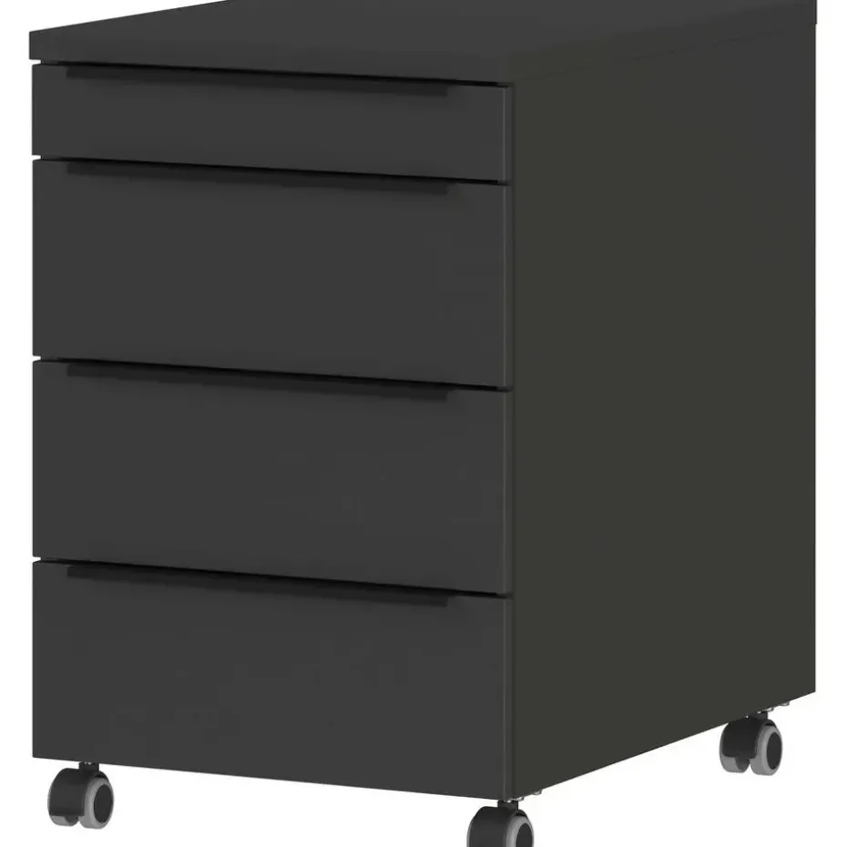 De ladekast met wielen uit de Hermoso-reeks combineert functionaliteit met een eigentijds ontwerp. Het antracietkleurige design voegt een moderne uitstraling toe aan elke ruimte. Met afmetingen van 42 cm lengte, 60 cm breedte en 63 cm hoogte biedt deze kast voldoende opbergruimte zonder te veel ruimte in beslag te nemen. De aanwezigheid van wielen maakt het gemakkelijk om de kast te verplaatsen naar verschillende locaties in huis, waardoor het een veelzijdige oplossing is voor het organiseren van kleding, accessoires, documenten of andere benodigdheden. Dankzij de soepel lopende wielen kunnen de lades moeiteloos worden geopend en gesloten, waardoor het gebruiksgemak wordt gemaximaliseerd. Het stevige materiaal zorgt voor duurzaamheid en stabiliteit, terwijl het slanke ontwerp het ideaal maakt voor gebruik in diverse interieurstijlen. Of het nu in de slaapkamer, woonkamer, kantoor of zelfs in een studioappartement is, deze ladekast past zich gemakkelijk aan aan elke omgeving en biedt een praktische en esthetisch aantrekkelijke opbergoplossing.