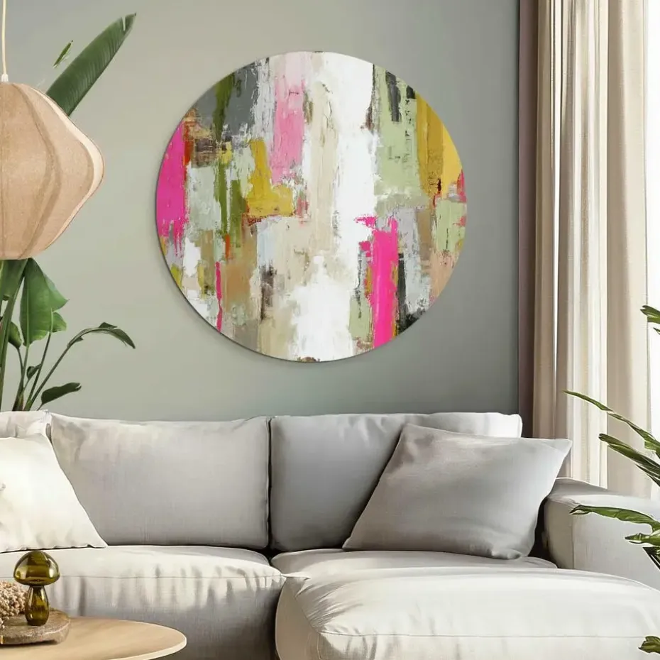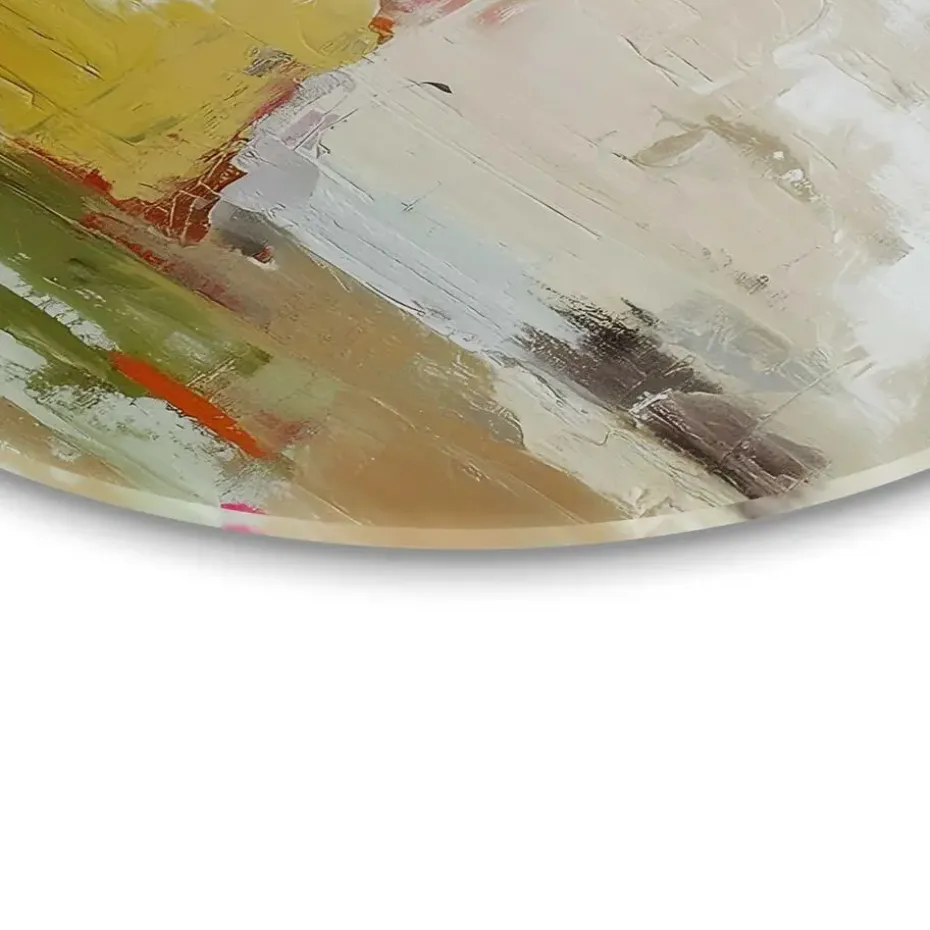 Print op 4mm dik ESG-veiligheidsglas, compleet met voorgemonteerde wandmontage en afstandhouders. De ronde vorm van de glasprint onderstreept op subtiele wijze het kenmerkende karakter van de afbeelding. Kenmerken
