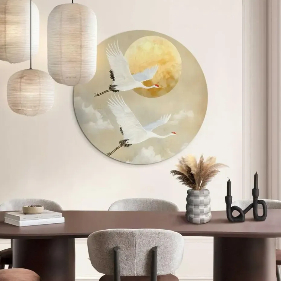 Print op 4mm dik ESG-veiligheidsglas, compleet met voorgemonteerde wandmontage en afstandhouders. De ronde vorm van de glasprint onderstreept op subtiele wijze het kenmerkende karakter van de afbeelding. Kenmerken