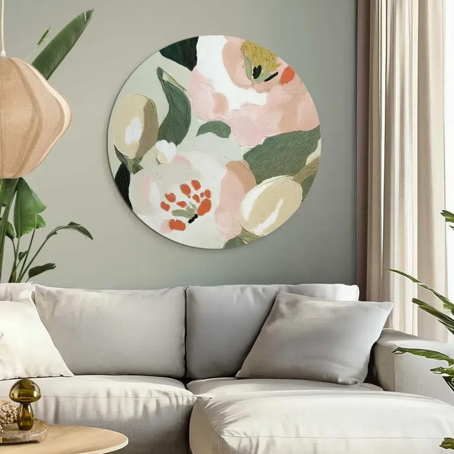 Print op 4mm dik ESG-veiligheidsglas, compleet met voorgemonteerde wandmontage en afstandhouders. De ronde vorm van de glasprint onderstreept op subtiele wijze het kenmerkende karakter van de afbeelding. Kenmerken