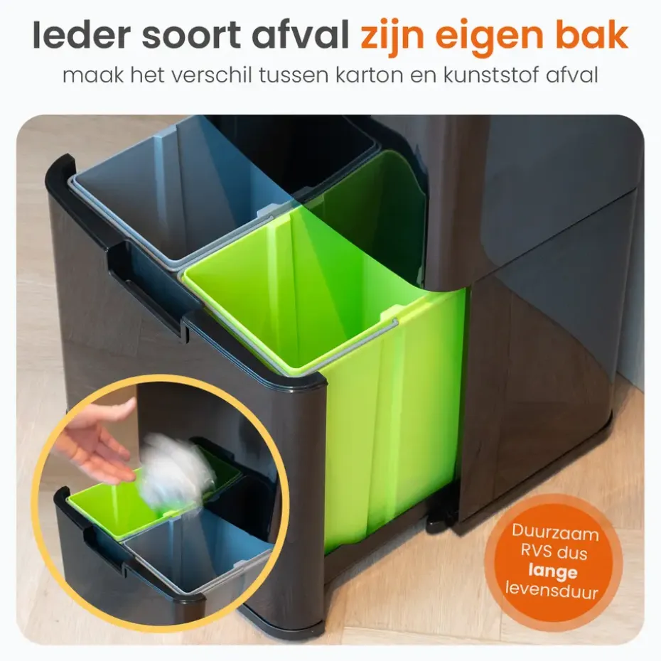 - Inhoud afvalemmers onderin: 2 x 12 Liter