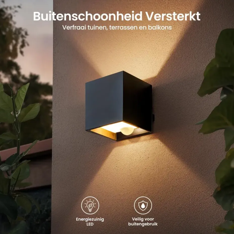 Verlicht je woning, tuin, terras of oprit op een stijlvolle en automatische manier met de Goliving wandlamp met bewegingssensor. Deze moderne kubuslamp reageert direct op beweging en combineert een strak industrieel design met waterdichte IP65 bescherming en energiezuinige LED-verlichting. De perfecte keuze voor wie op zoek is naar een betrouwbare wandlamp met sensor voor buiten of binnen.