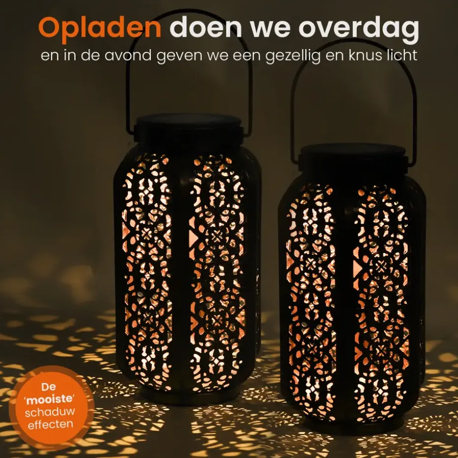De unieke schaduweffecten die door het metalen ontwerp worden gecreëerd, zorgen voor een prachtig lichtspel op je terras of in de tuin. Dit voegt een artistiek element toe aan je buitenverlichting en maakt elke avond speciaal.