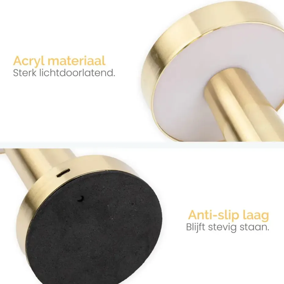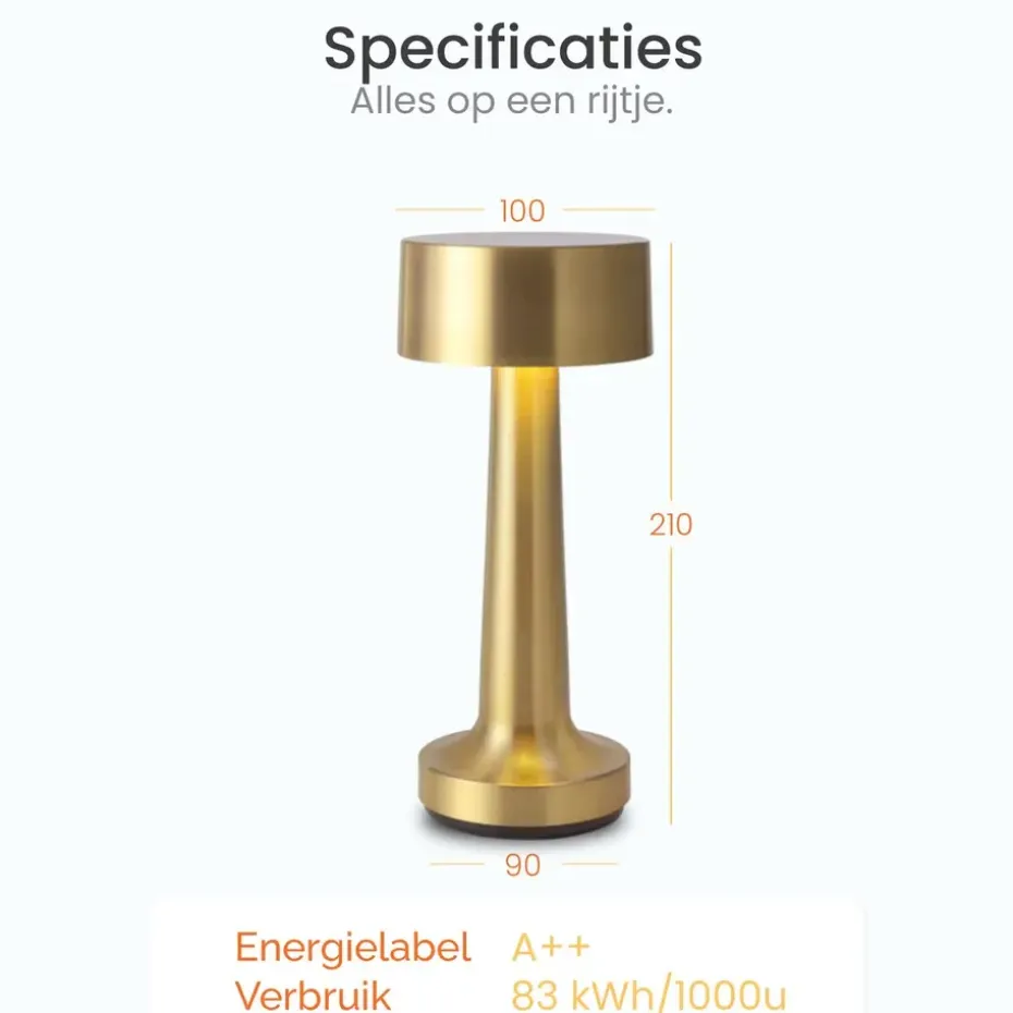 De draadloze Goliving tafellamp is een moderne lichtbron voor in elke ruimte. Van een slaapkamer-tafellamp of nachtlampje, tot de woonkamer: deze tafellamp komt overal tot zijn recht. De lamp is in strak metaal uitgevoerd, en je bedient hem met één subtiele aanraking. De lamp heeft drie standen van sfeervol warm licht, tot kraakhelder wit. De batterij van de lamp heeft bovendien een zeer