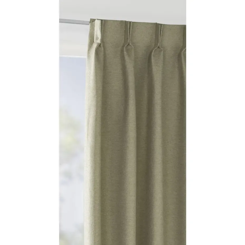 Gordijnstof Nox verduisterend in groen combineert een natuurlijke, rustgevende kleur met maximale functionaliteit. Het fijn geweven materiaal met melee patroon geeft de stof een subtiele textuur en een stijlvolle uitstraling. Dankzij de 100% verduisterende kwaliteit wordt licht volledig tegengehouden, waardoor je een donkere en rustige sfeer in de kamer creëert. De loodveter finish zorgt voor een nette en verzorgde val van het overgordijn. Deze stof is eenvoudig te onderhouden: wasbaar op 30 graden Celsius, licht te strijken op de laagste stand en niet geschikt voor de droger. Zo blijft de stof mooi in vorm en behoudt het zijn hoogwaardige uitstraling. Als je op zoek bent naar een overgordijn dat volledig verduistert, een rustgevende kleur en elegante textuur heeft en makkelijk te onderhouden is, dan is gordijnstof Nox verduisterend een goede keuze.