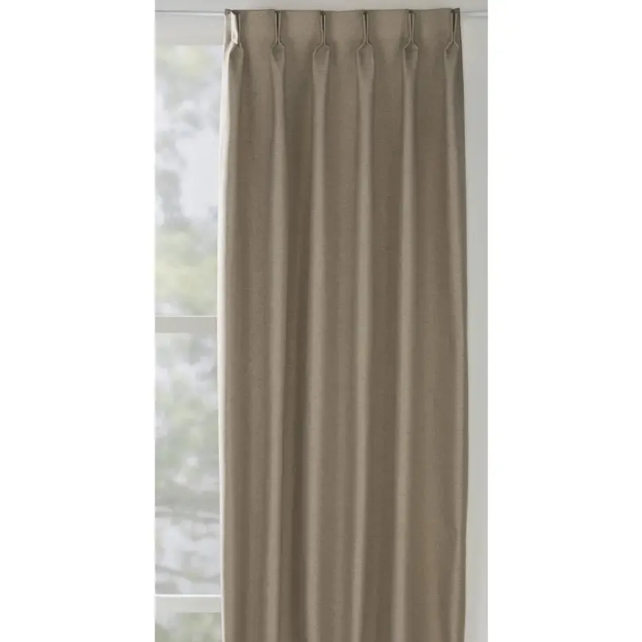 Gordijnstof Nox verduisterend in lichtbruin combineert een warme uitstraling met optimale functionaliteit. Het fijn geweven materiaal met melee patroon geeft de stof een subtiele textuur en een stijlvolle look. Dankzij de 100% verduisterende kwaliteit wordt licht volledig tegengehouden, waardoor je een donkere en rustige sfeer in de kamer creëert. De loodveter finish zorgt voor een nette en verzorgde val van het gordijn. Deze stof is praktisch in onderhoud: wasbaar op 30 graden Celsius, licht te strijken op de laagste stand en niet geschikt voor de droger. Zo blijft de stof mooi in vorm en behoudt het zijn hoogwaardige uitstraling. Als je op zoek bent naar een gordijn dat volledig verduistert, een warme en elegante uitstraling heeft en eenvoudig te onderhouden is, dan is gordijnstof Nox verduisterend een goede keuze.