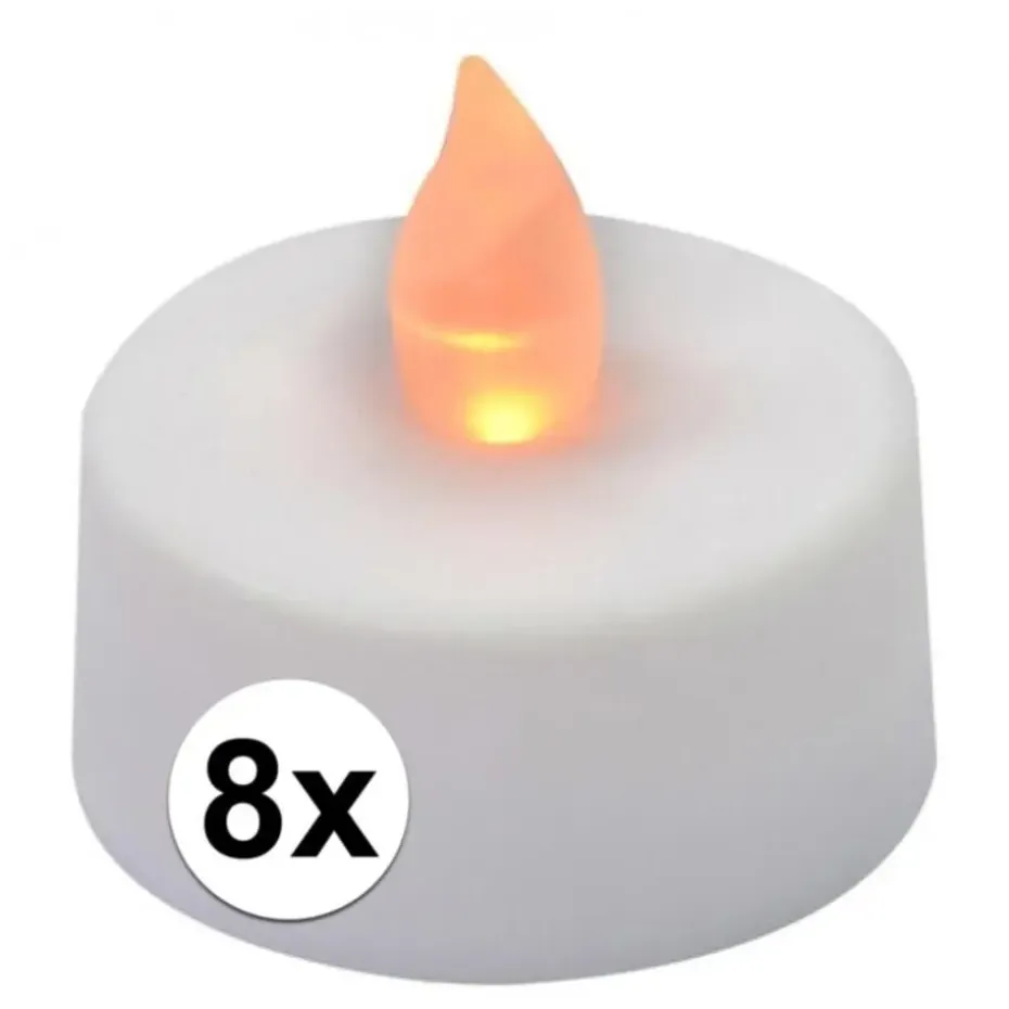 Set van 8 flikkerende LED waxinekaarsjes – theelichtjes – op CR2032 batterij – 3,5 x 3,5 cm