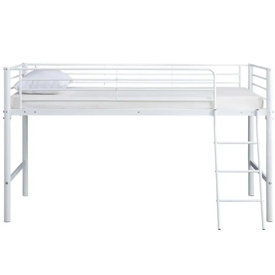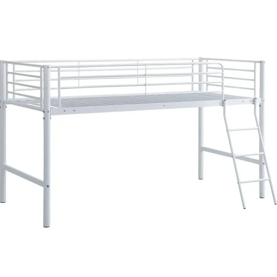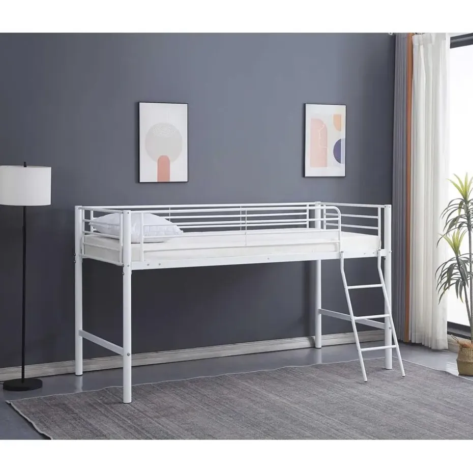 De metalen halfhoogslapers Julie combineren modern design met functionaliteit en zijn de perfecte oplossing voor kamers waar ruimtebesparing essentieel is. De metalen constructie zorgt voor stevigheid en stabiliteit en geeft de bedden een coole uitstraling. Het bed heeft een een ligoppervlak van 90x200cm en is te bereiken via een veilige ladder. Deze hoogslapers zijn geschikt voor zowel kinderen als volwassenen, waardoor ze perfect zijn voor bijvoorbeeld studentenkamers of tienerkamers. De ruimte onder het bed kan gebruikt worden als opbergruimte, of om een bureau te plaatsen. Of richt met wat kussens of poefs een plek in waar je tiener lekker kan “chillen”.
