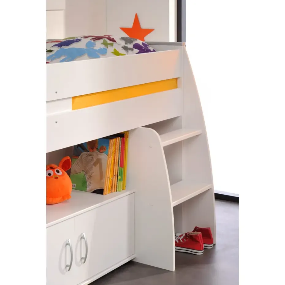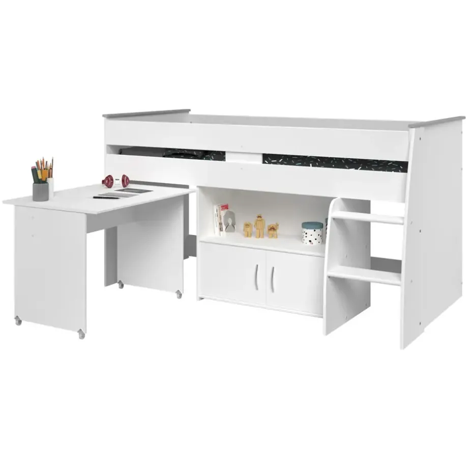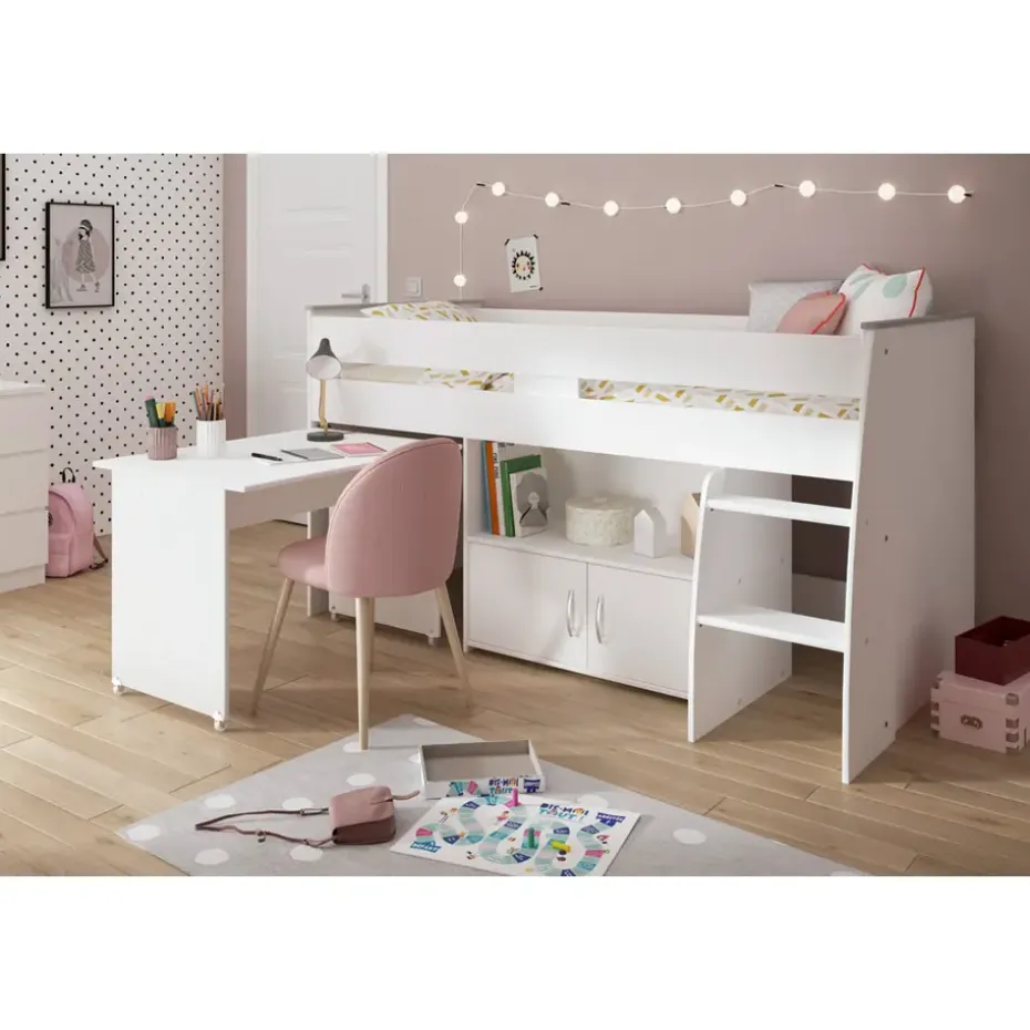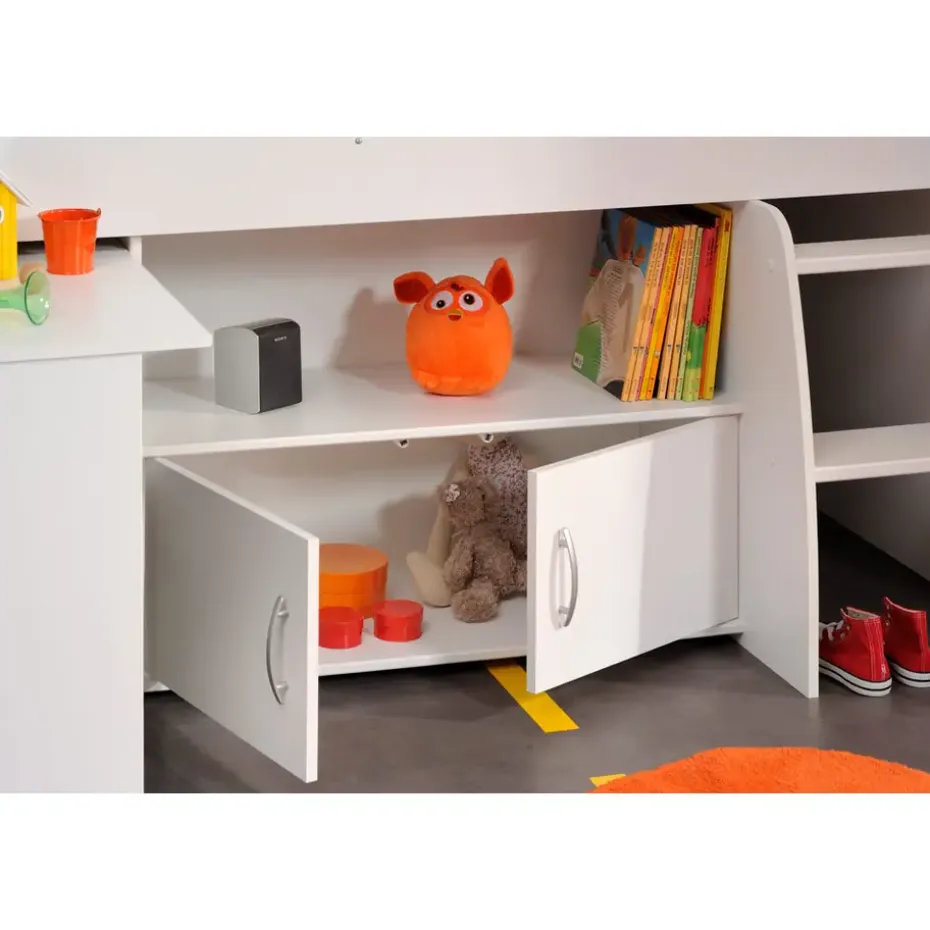 Halfhoogslaper Reverse is zeer geschikt voor een opgroeiend kind. Het staat niet alleen leuk en gezellig, je bespaart ook nog eens ruimte. Halfhoogslaper Reverse is een bed in de kleur wit met een totale afmeting van 110×183,1×206,4 cm. Het bed is geschikt voor een matras van 90×200 cm. Halfhoogslaper Reverse heeft een moderne uitstraling, maar het past in vrijwel ieder interieur. Omdat het bed diverse opbergmogelijkheden biedt, zoals kastjes, heb je genoeg ruimte om diverse spulletjes op te bergen.