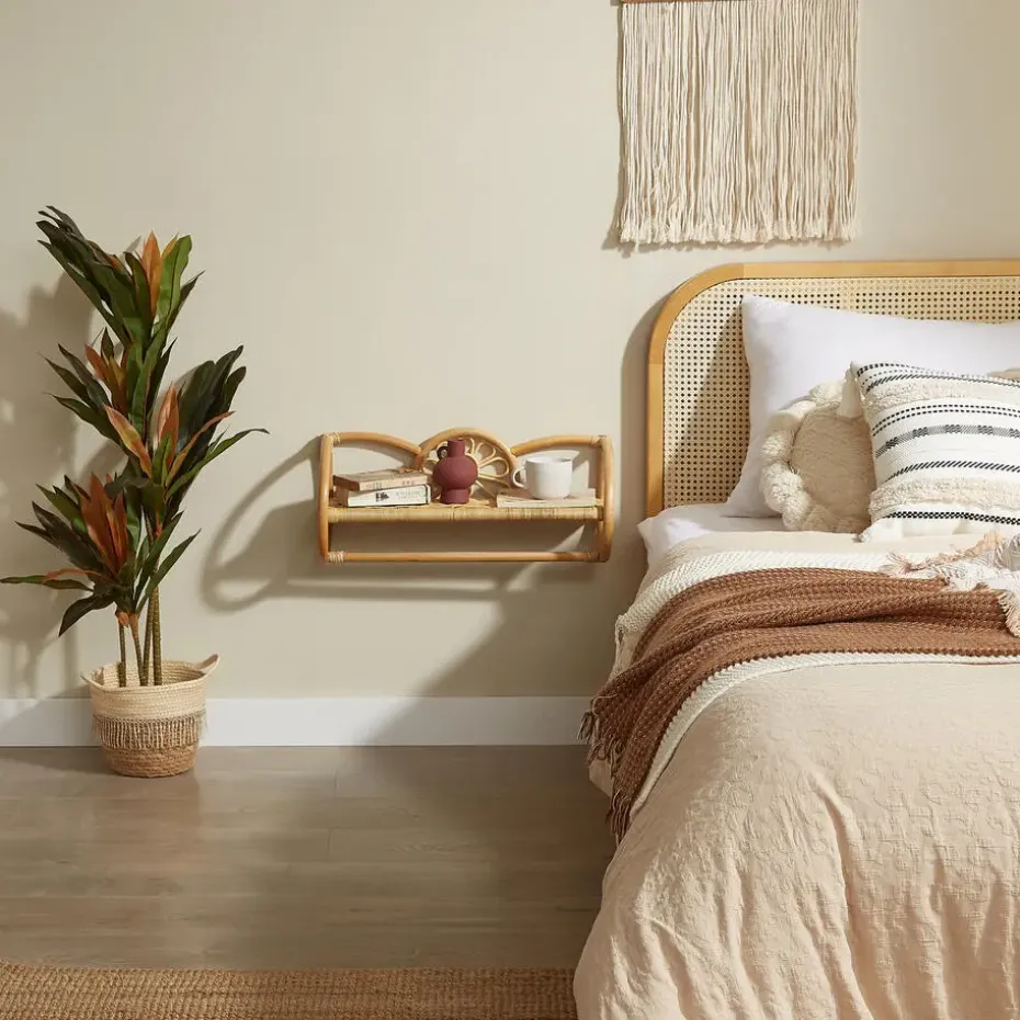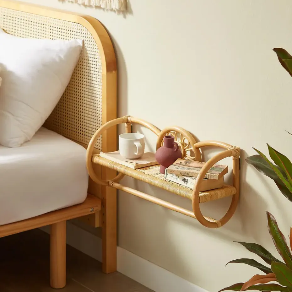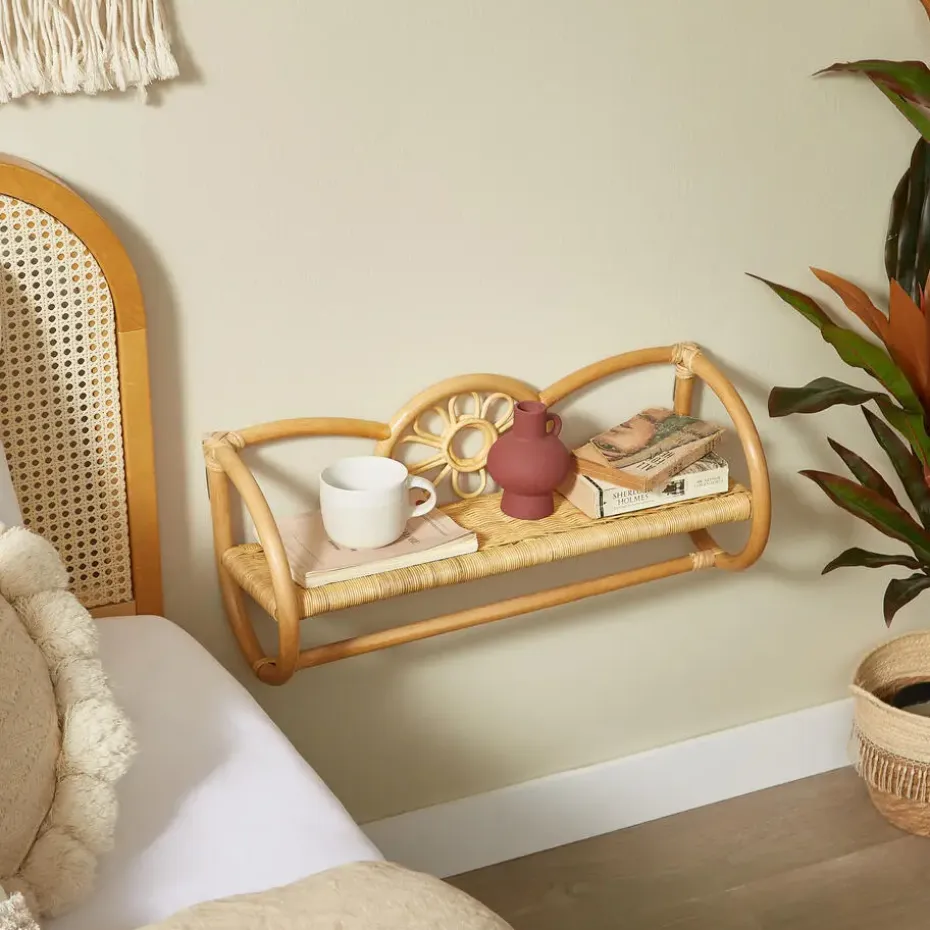 Ontdek onze hangende wandplank van natuurlijk rotan, die een vleugje Scandinavische stijl aan uw interieur zal toevoegen. Met zijn ontwerp plateau is deze plank zowel praktisch als esthetisch. De natuurlijke kleur en het rotan materiaal geven het zowel duurzaamheid als eenvoudig onderhoud. Gecertificeerd voor zijn kwaliteit, is het afgewerkt met een gelakt ontwerp voor een tijdloze uitstraling die perfect zal passen bij alle soorten decor. Kies voor deze hangende wandplank voor extra opbergruimte en voeg een vleugje warmte en authenticiteit toe aan uw kamer.