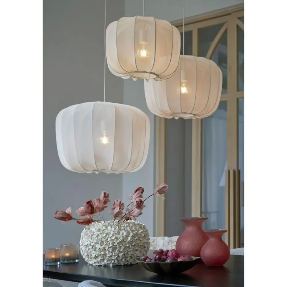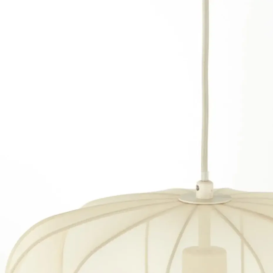 Dompel jezelf onder in een warme en uitnodigende sfeer met de Plumeria hanglamp. Deze elegante lamp heeft een uniek kapontwerp met een zachte, zandkleurige textiele drapering rond een stevig metalen frame. Met een diameter van 40 cm creëert deze lamp een zachte en uitnodigende gloed, perfect om te relaxen in je slaapkamer of een vleugje verfijning toe te voegen aan je woonkamer. De combinatie van de natuurlijke textuur van de stof en de industriële touch van het metalen frame creëert een visueel intrigerend stuk dat past bij verschillende interieurstijlen.
